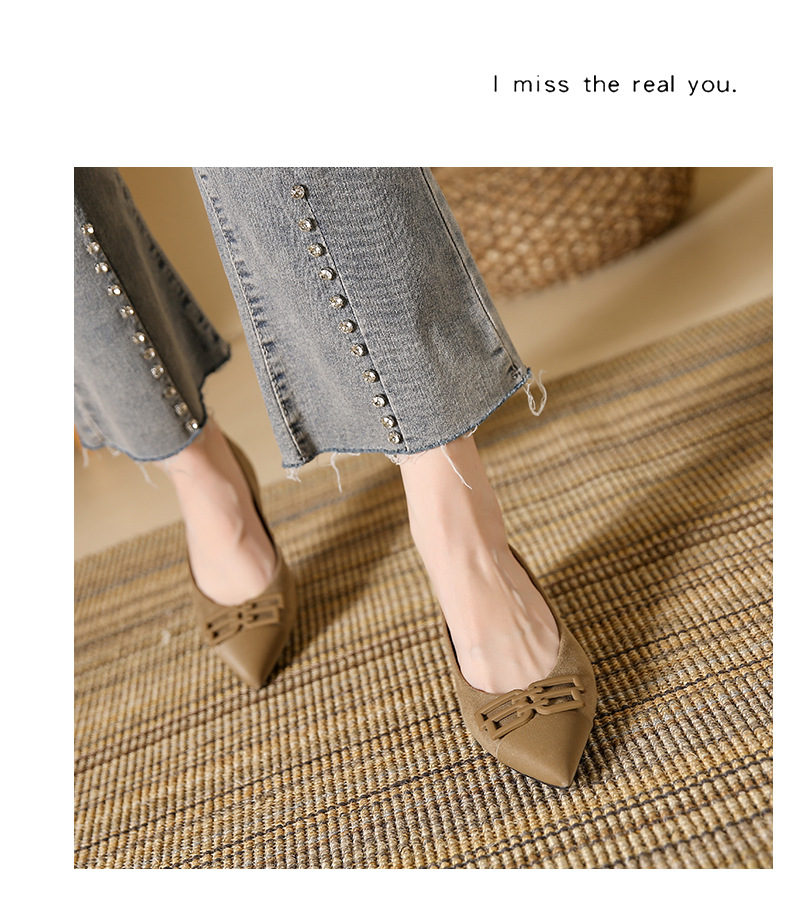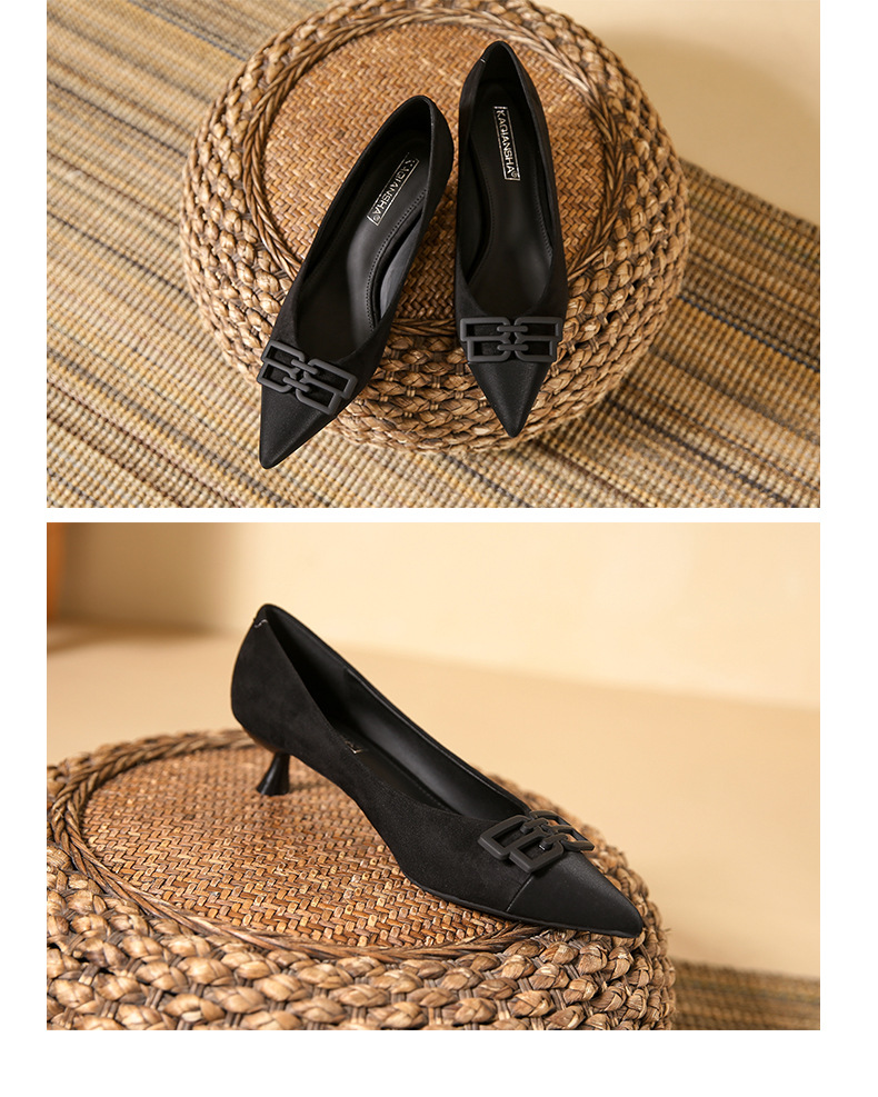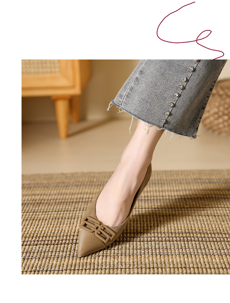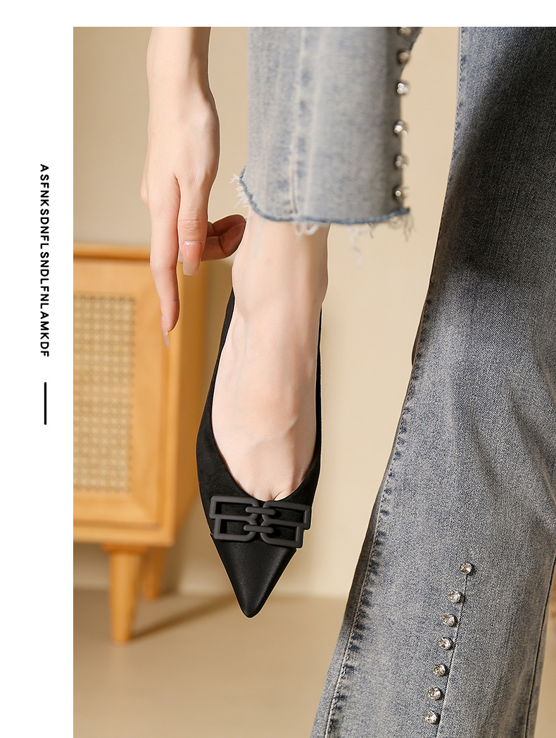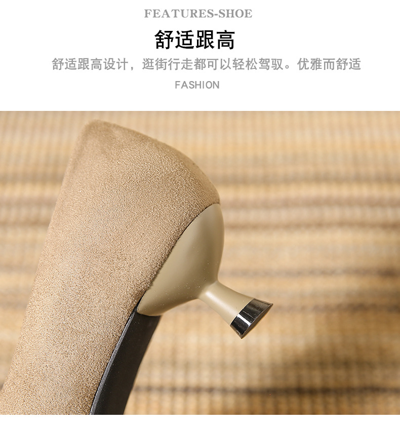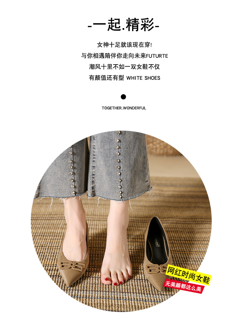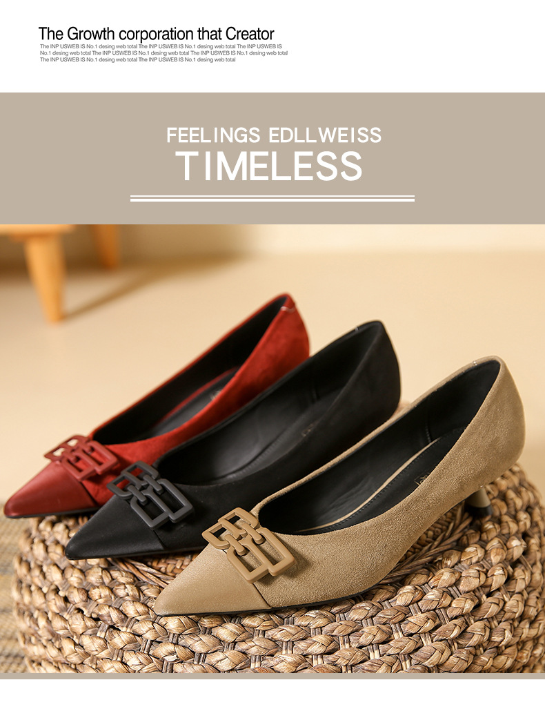 高跟鞋女新款尖头浅口细跟绒面方扣一脚蹬单鞋红色鞋子复古