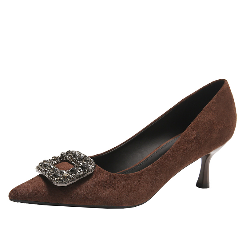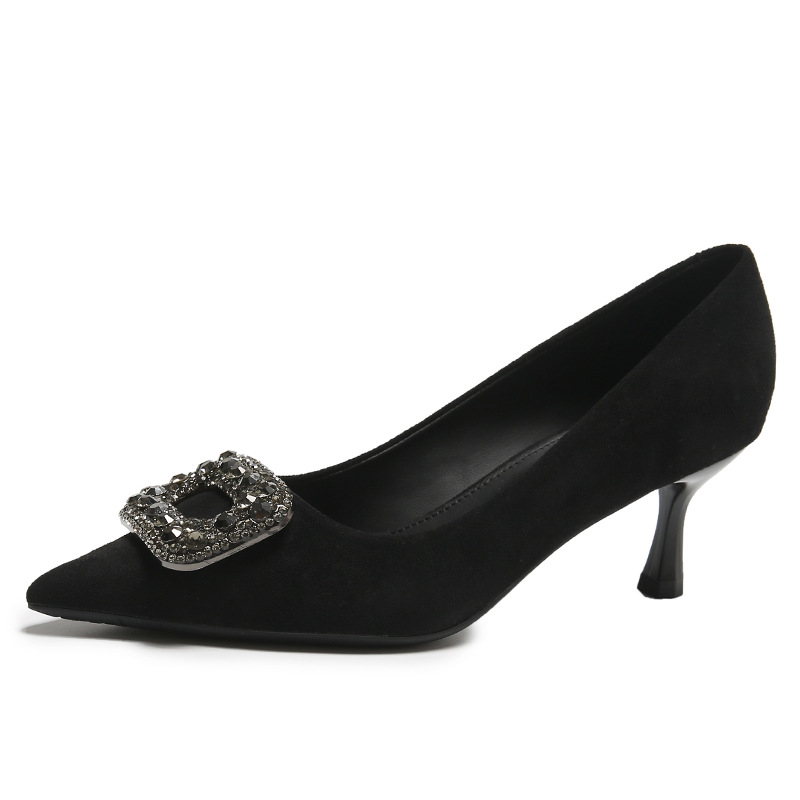 黑色高跟鞋女新款经典方扣水钻高跟鞋优雅通勤女单鞋潮