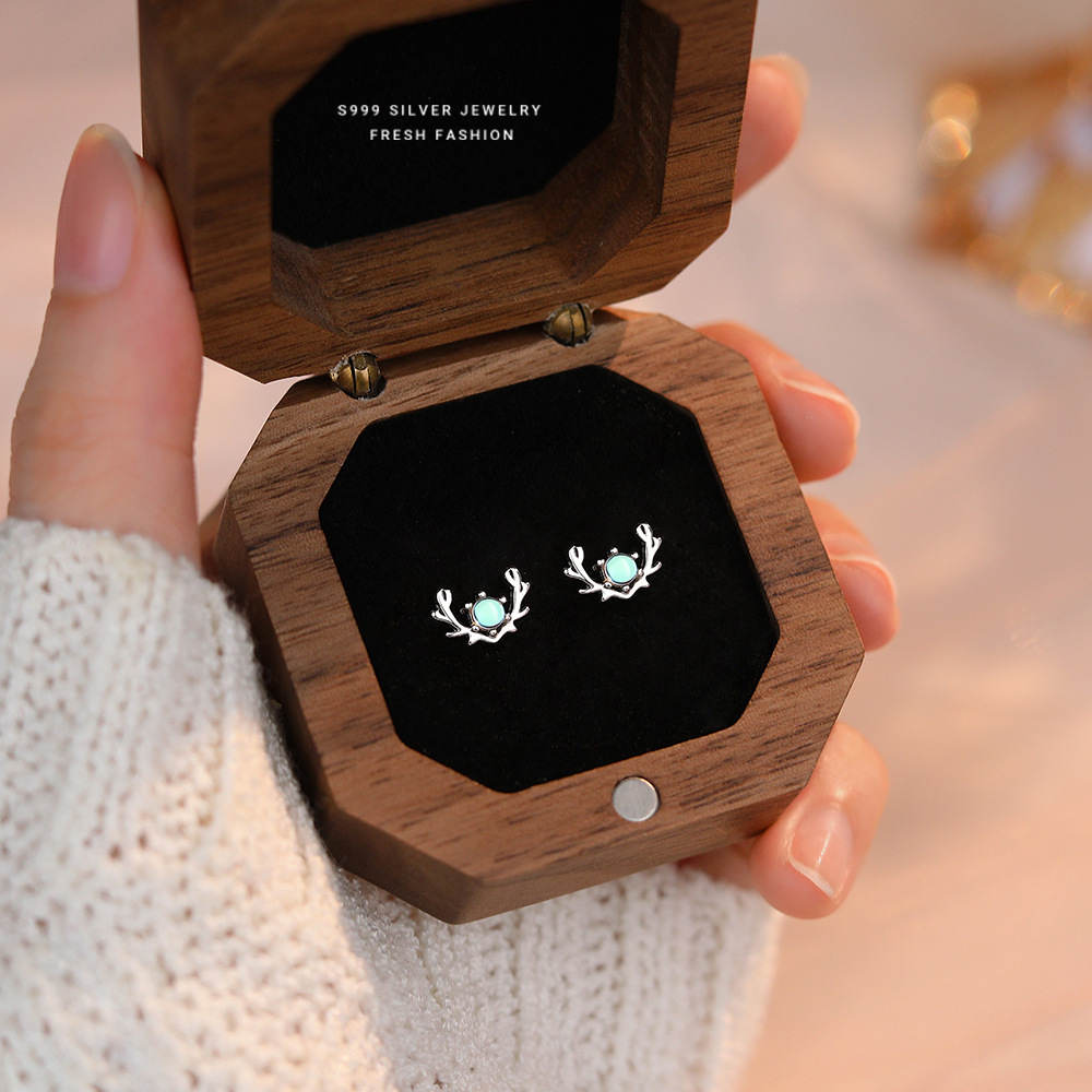 s999足银鹿角月光石耳钉女简约高级感森系小清新百搭气质设计耳饰