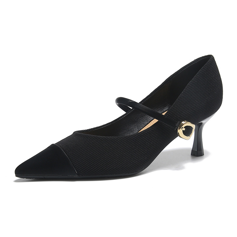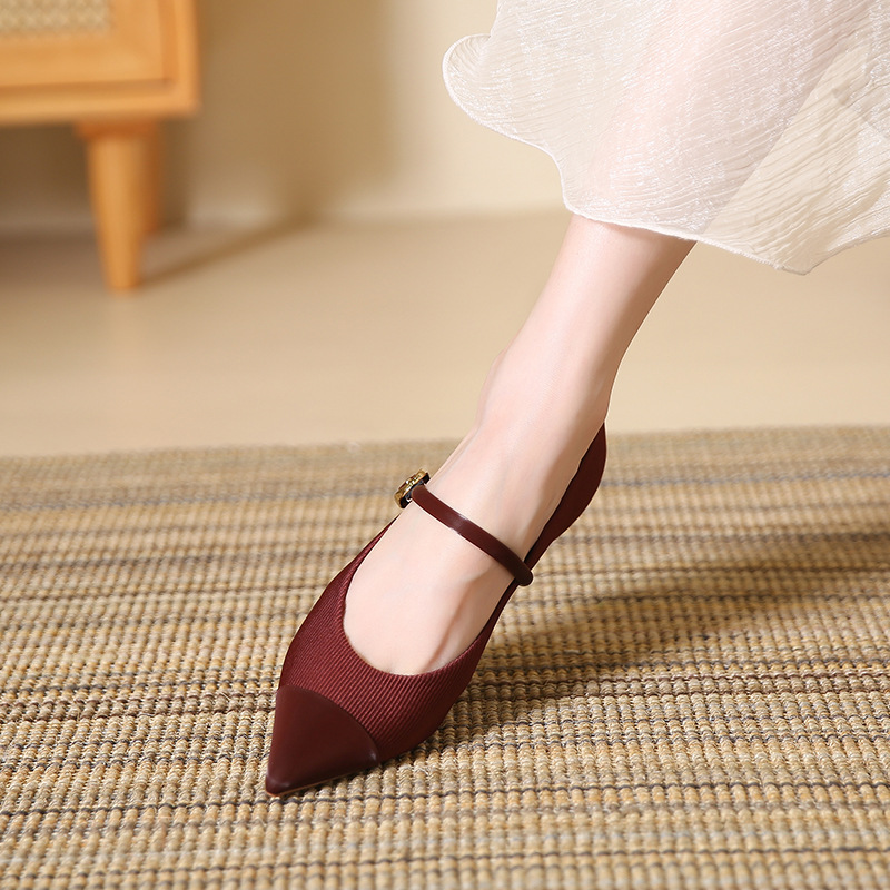 复古拼色高跟鞋女新款尖头细跟单鞋女士
