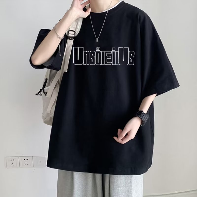 美式简约短袖t恤男士夏季青少年牛奶丝半袖体恤百搭宽松五分袖