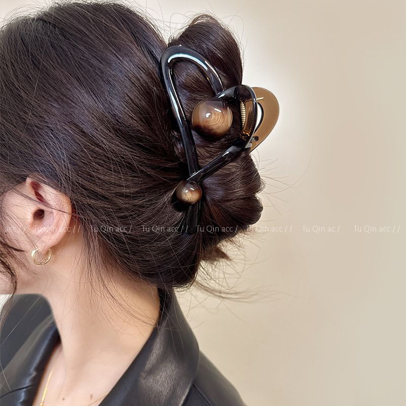 高级感咖色大号爱心抓夹气质发夹女后脑勺新款复古鲨鱼夹头饰