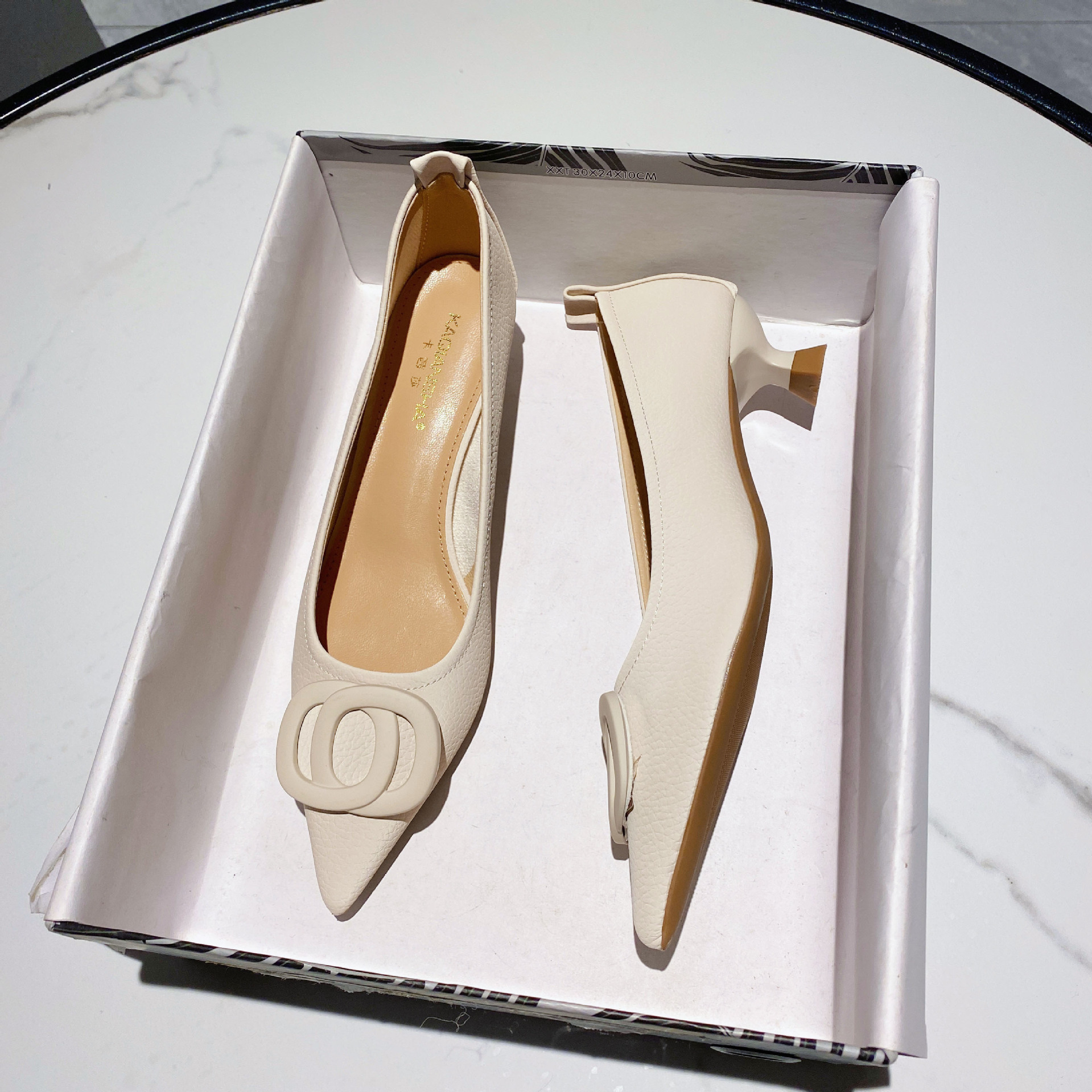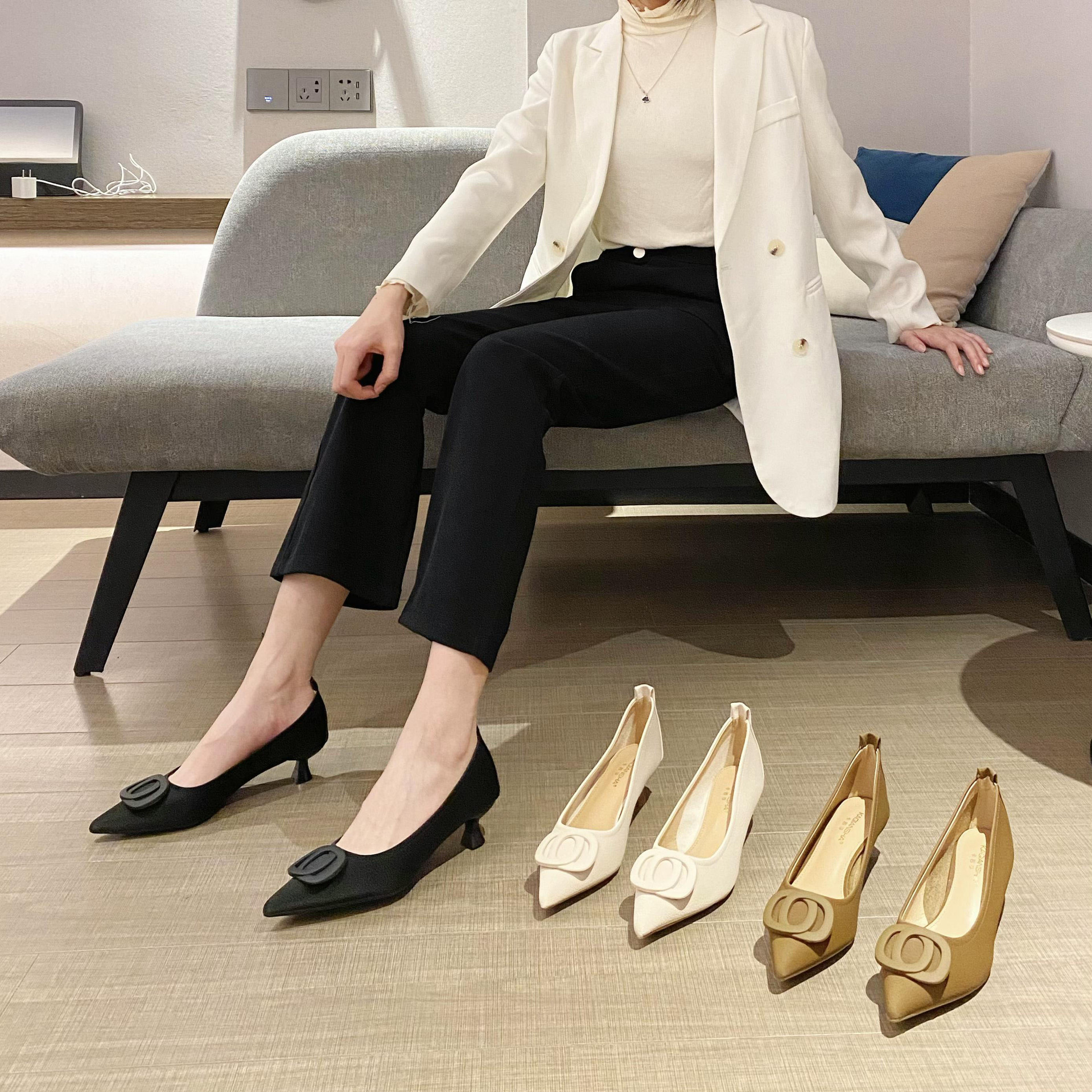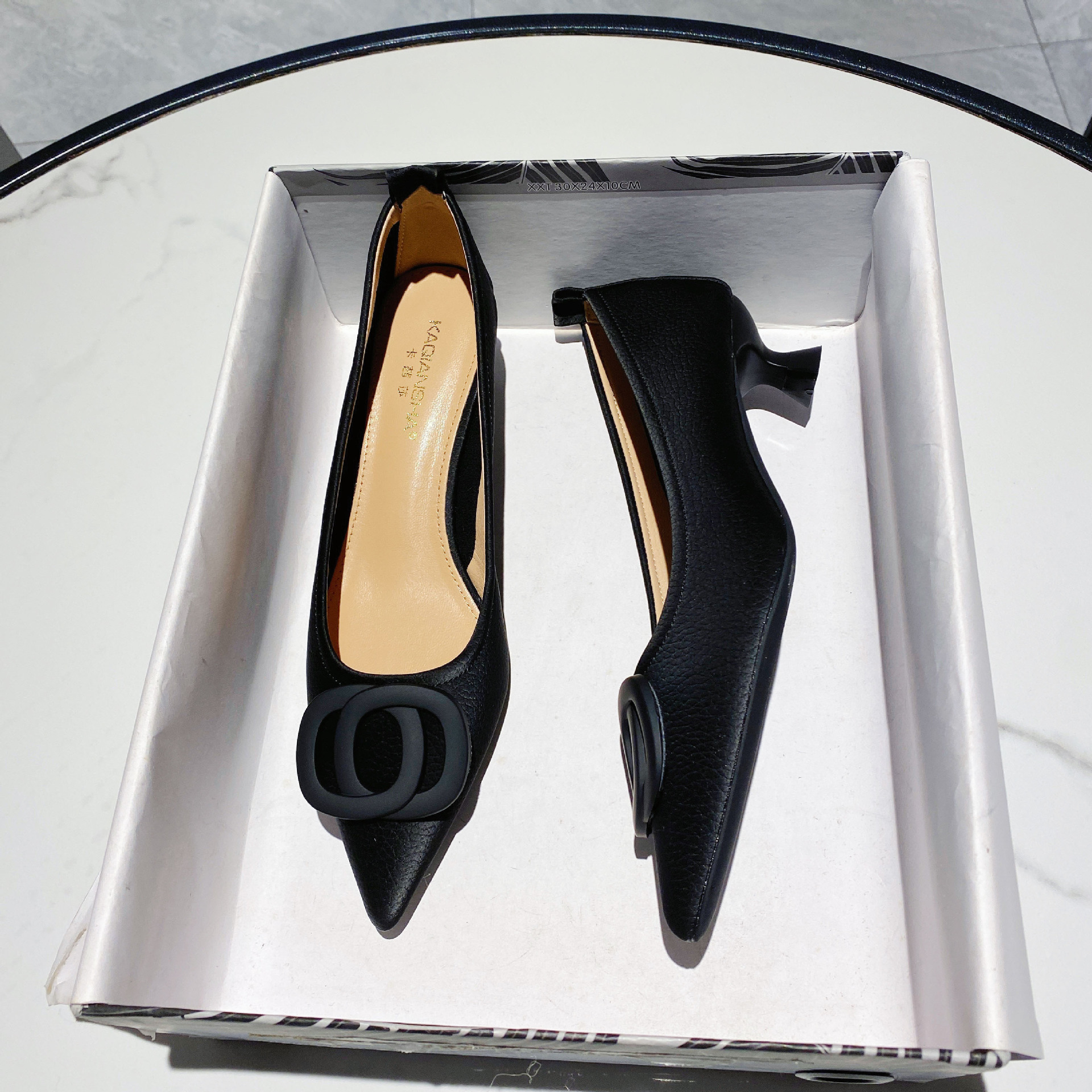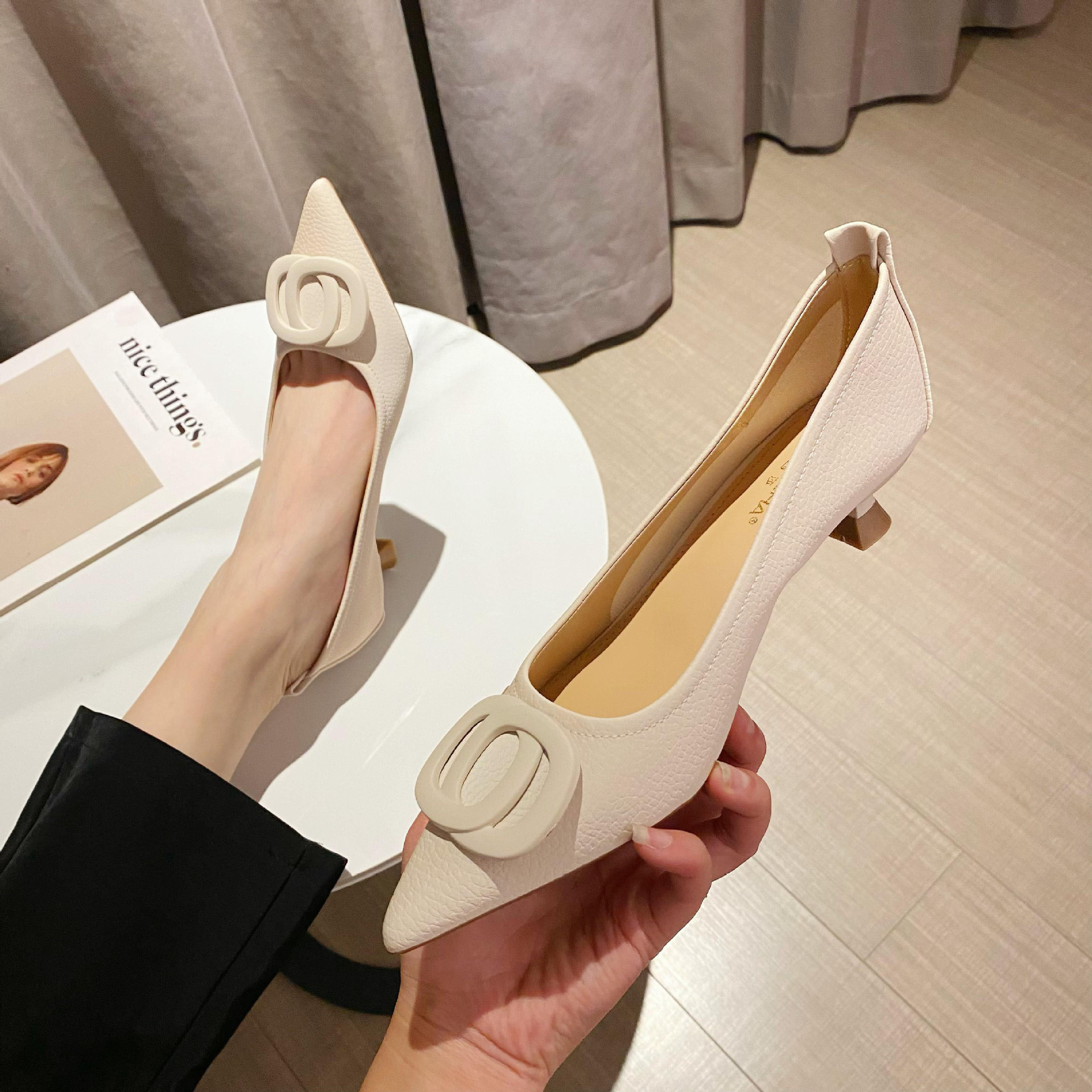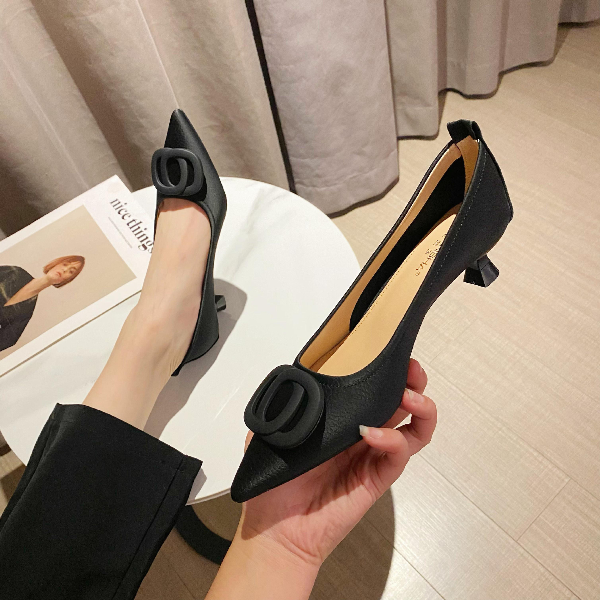 时尚尖头高跟鞋新款低帮浅口性感单鞋女中跟夏季超纤百搭