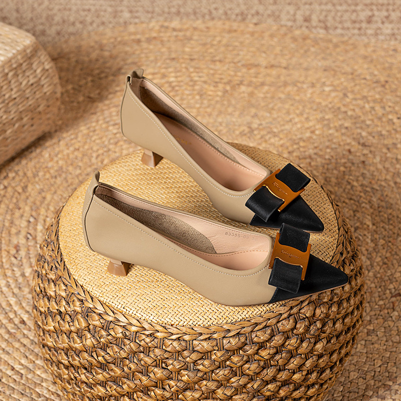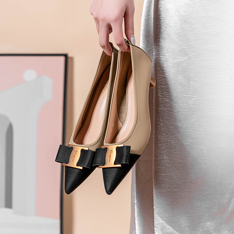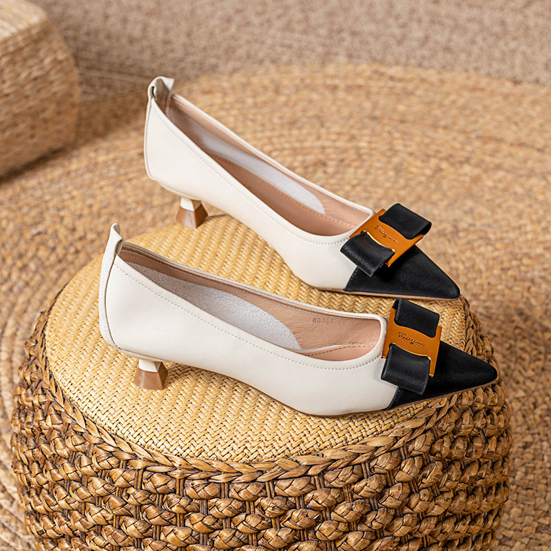 尖头细跟单鞋女新款低帮浅口女鞋软皮高跟鞋不累脚鞋百搭