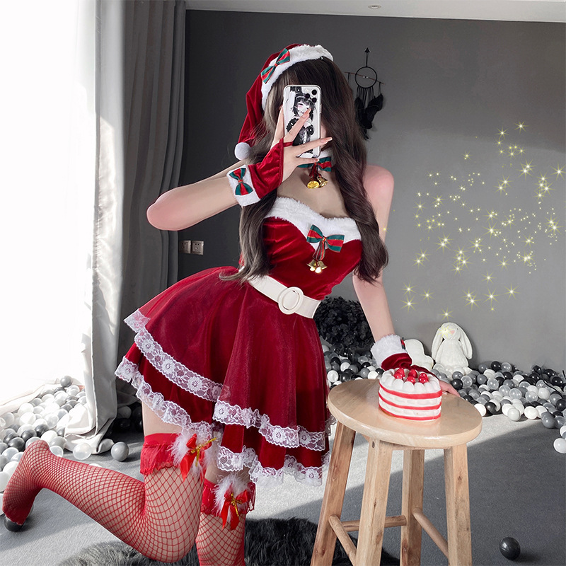 派对主播演出服金丝绒圣诞服性感兔女郎服装圣诞装夜店酒吧