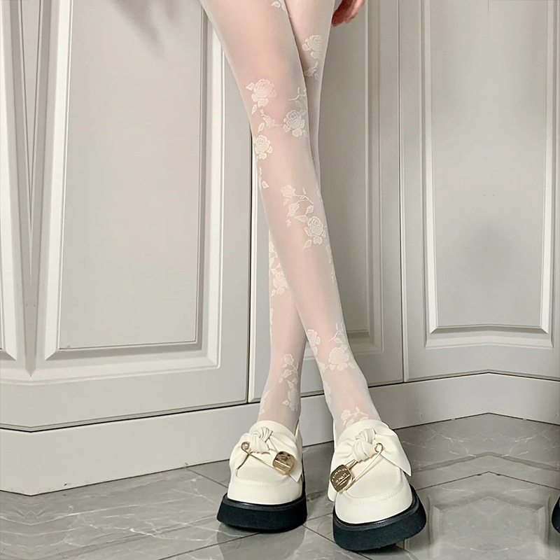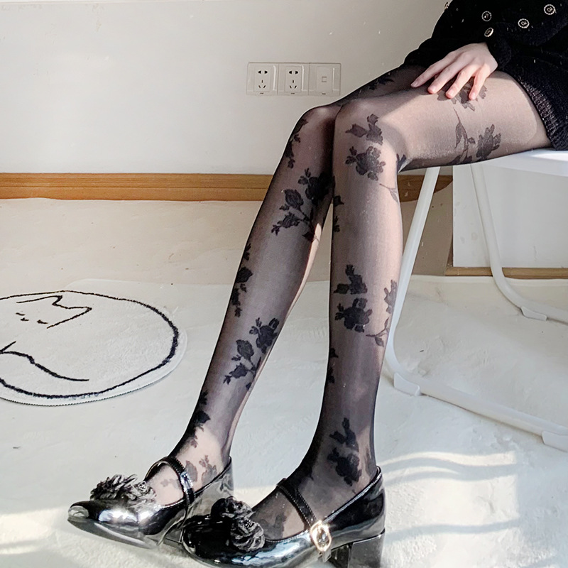 日系春夏奶白刺绣玫瑰提花丝袜防勾丝超薄蕾丝款jk连裤袜子女