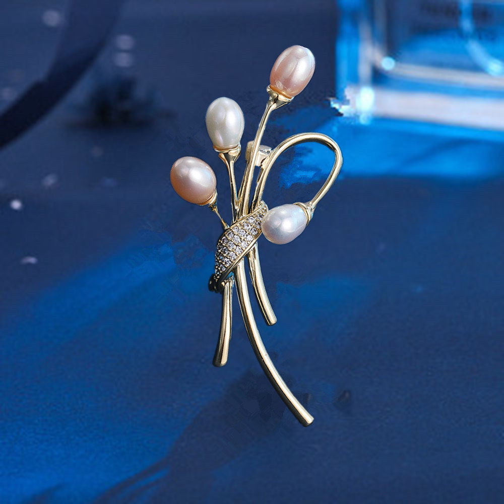 花卉高端胸针女小众别针 镶嵌淡水珍珠胸花配饰 百搭气质服饰