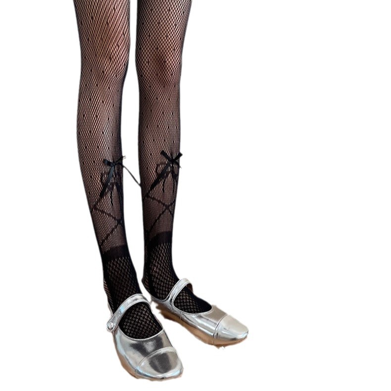 纯欲芭蕾舞风丝带蝴蝶结蕾丝打底连裤渔网袜日系少女薄款白色丝袜