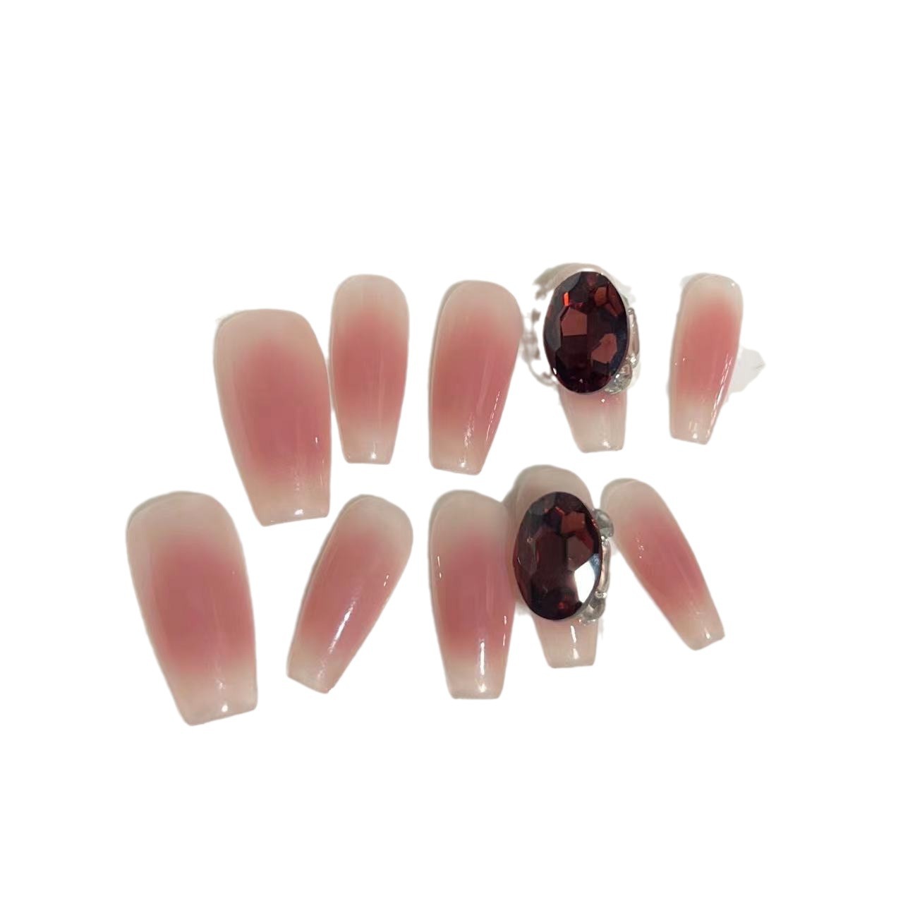 实拍穿戴甲纯手工美甲成品假指甲贴片轻奢裸色腮红爆闪酒红钻