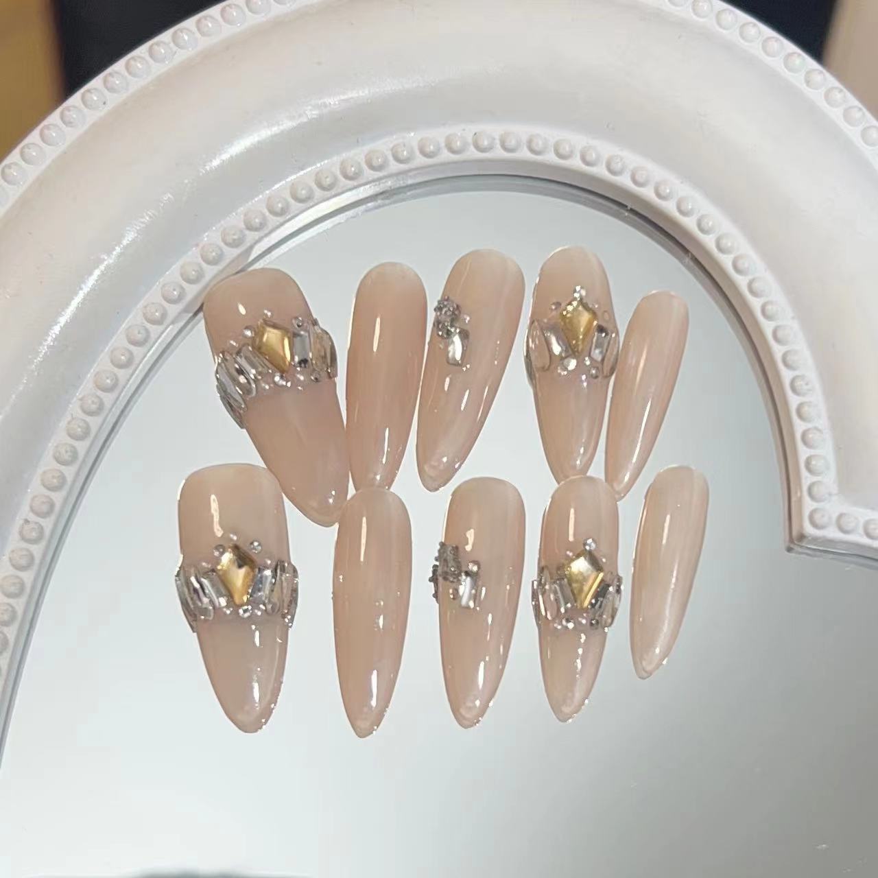 穿戴甲纯手工美甲成品假指甲贴片新款裸色爆闪钻纯欲手工美甲