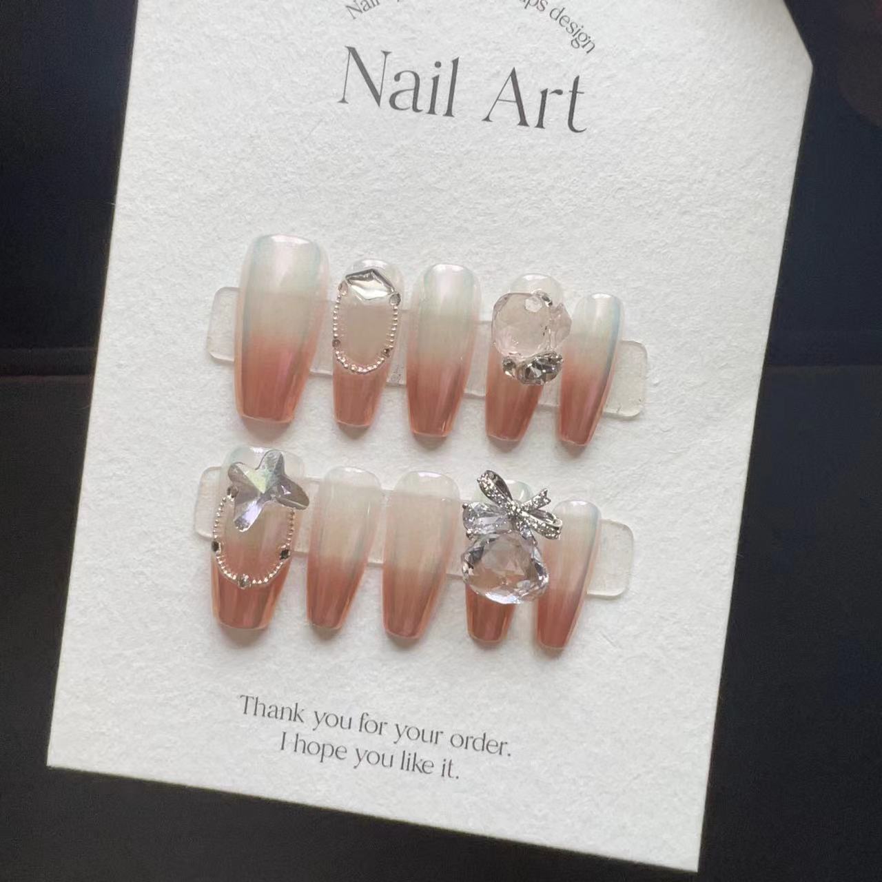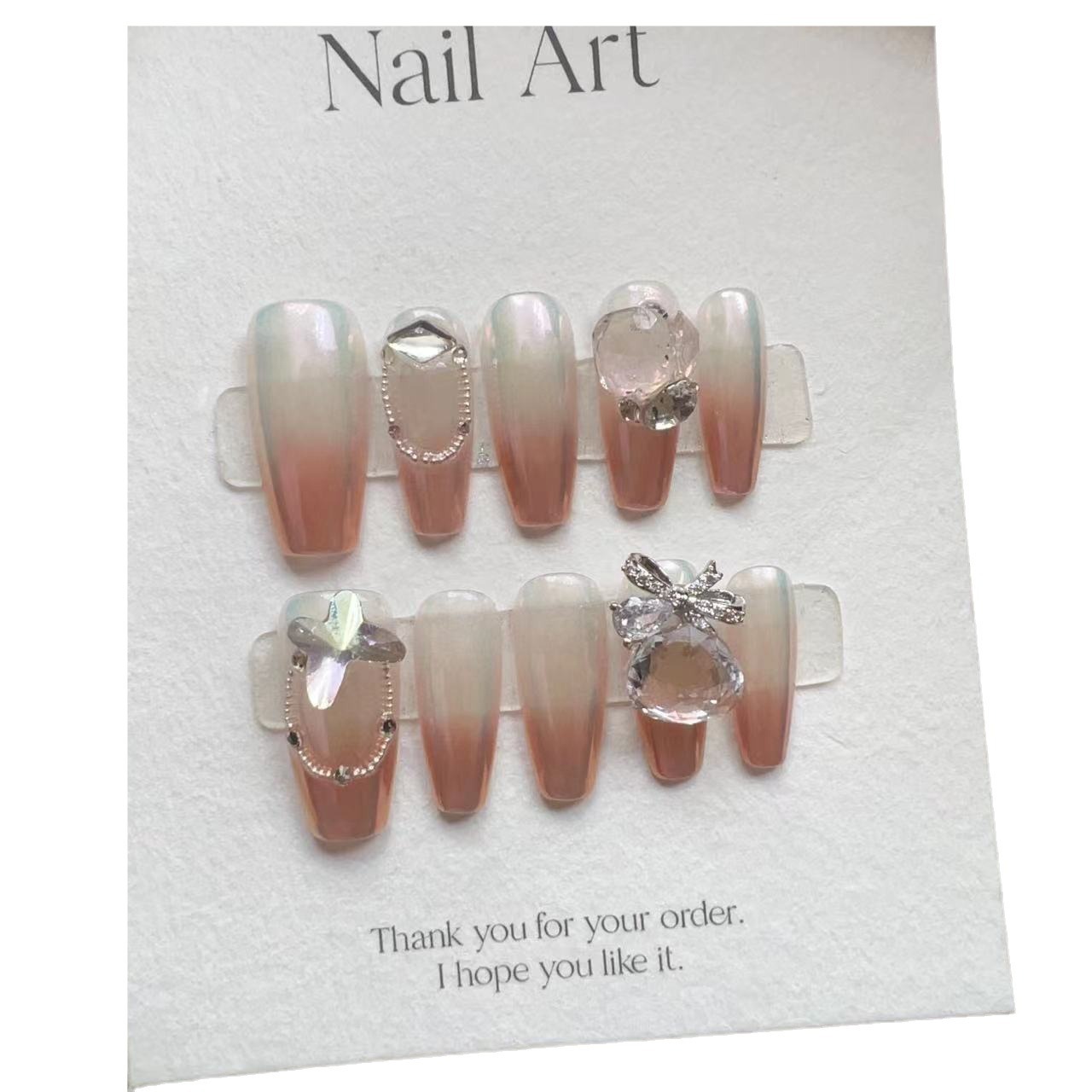 穿戴甲纯手工美甲成品假指甲贴片极光魔镜粉纯欲风仙女爆闪福袋钻