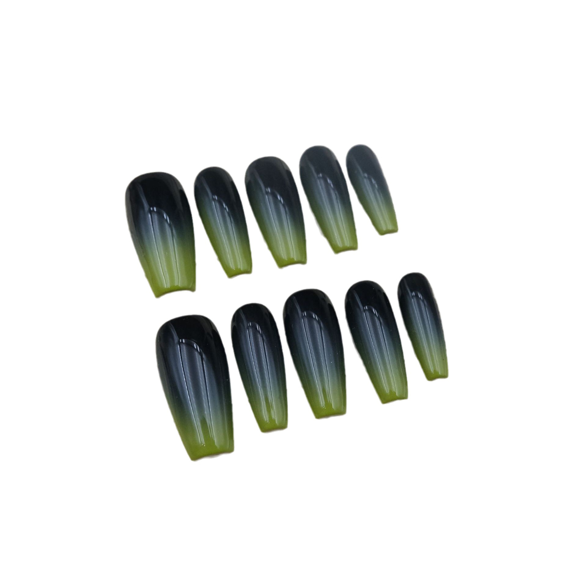 纯手工美甲穿戴甲假指甲贴片黑色甲片绿色渐变法式美甲贴片成品