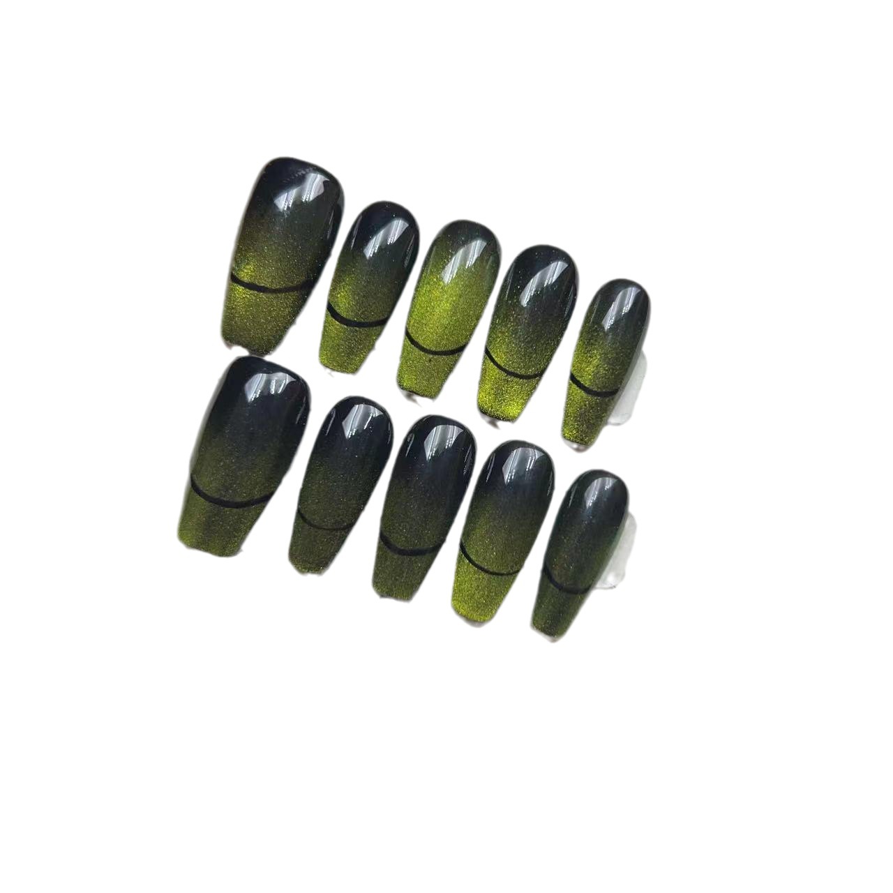 手工美甲穿戴甲假指甲贴片个性小众黑色绿猫眼渐变法式绿野仙踪