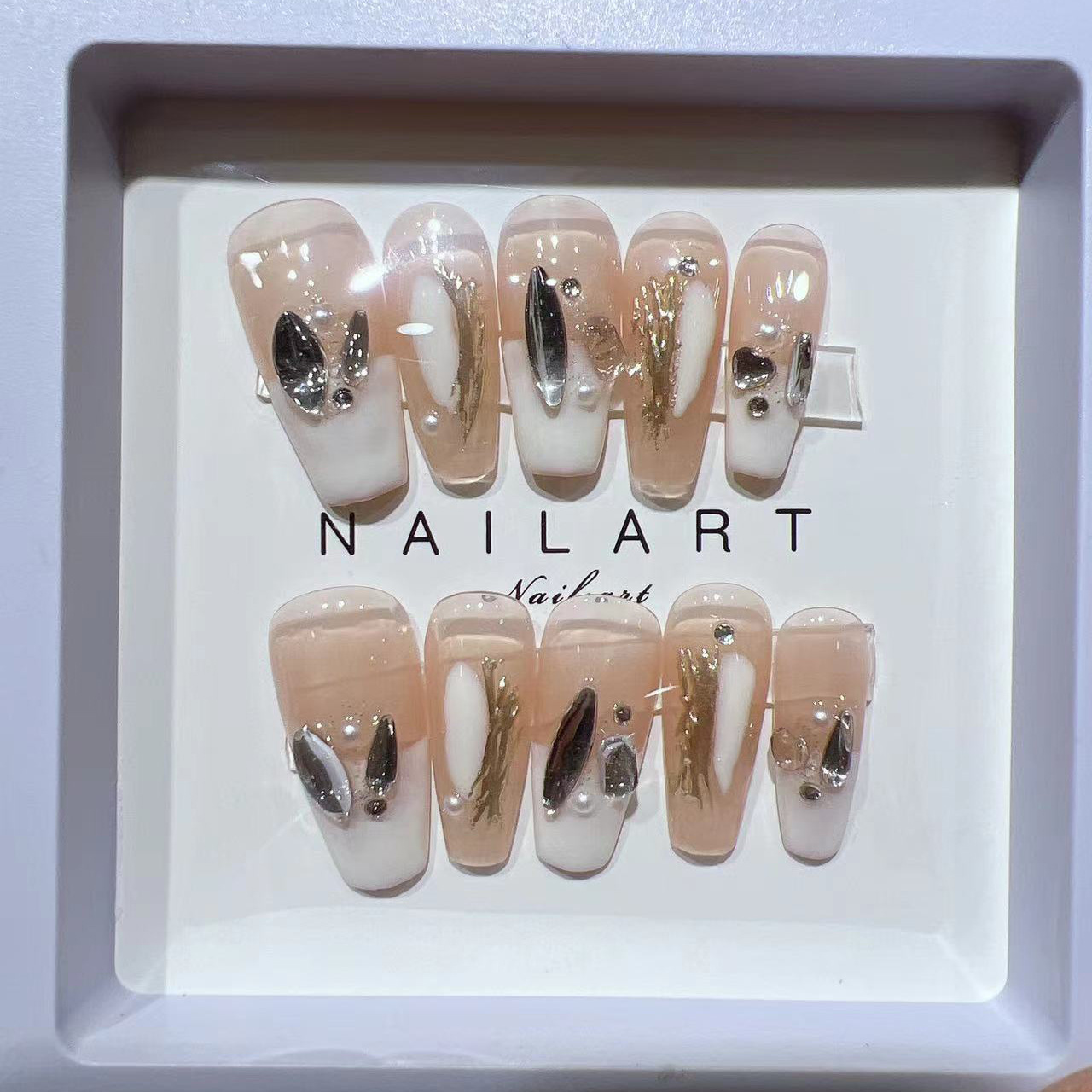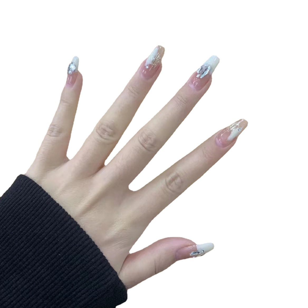 手工美甲穿戴甲年新款假指甲贴片法式渐变爆闪镶钻可拆卸甲片