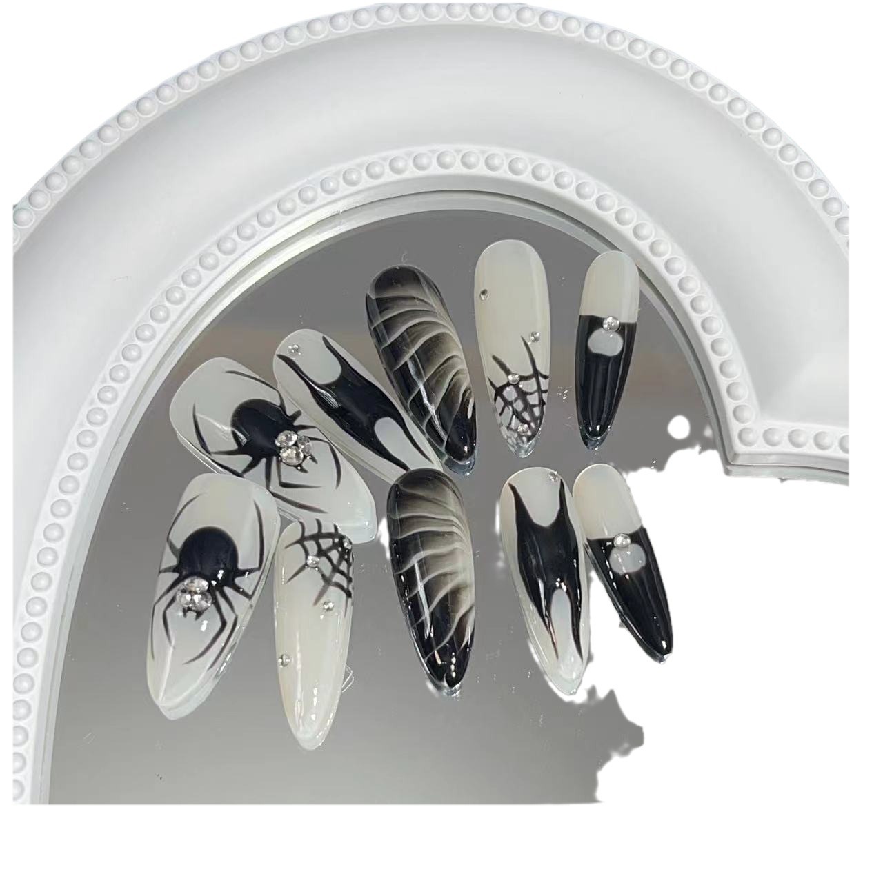 实拍穿戴甲纯手工美甲成品假指甲贴片暗黑系高级手绘蜘蛛美甲