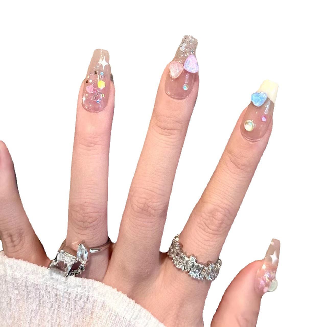 手工美甲穿戴甲指甲贴糖果色可爱清新色亮片美甲小红书爆款学生甲