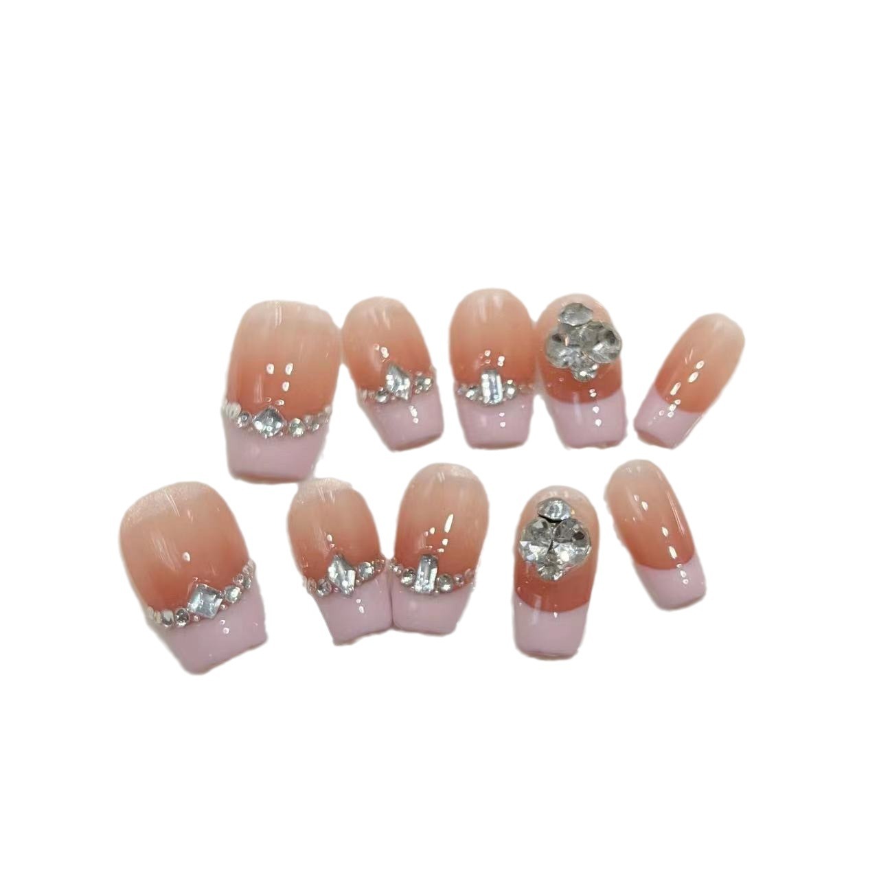 实拍穿戴甲手工美甲成品假指甲贴片香芋温柔紫色法式晕染渐变