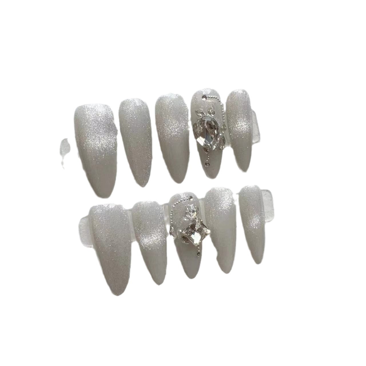 穿戴甲纯手工美甲成品假指甲贴片钢珠爆闪方钻晶石猫眼渐变水滴甲