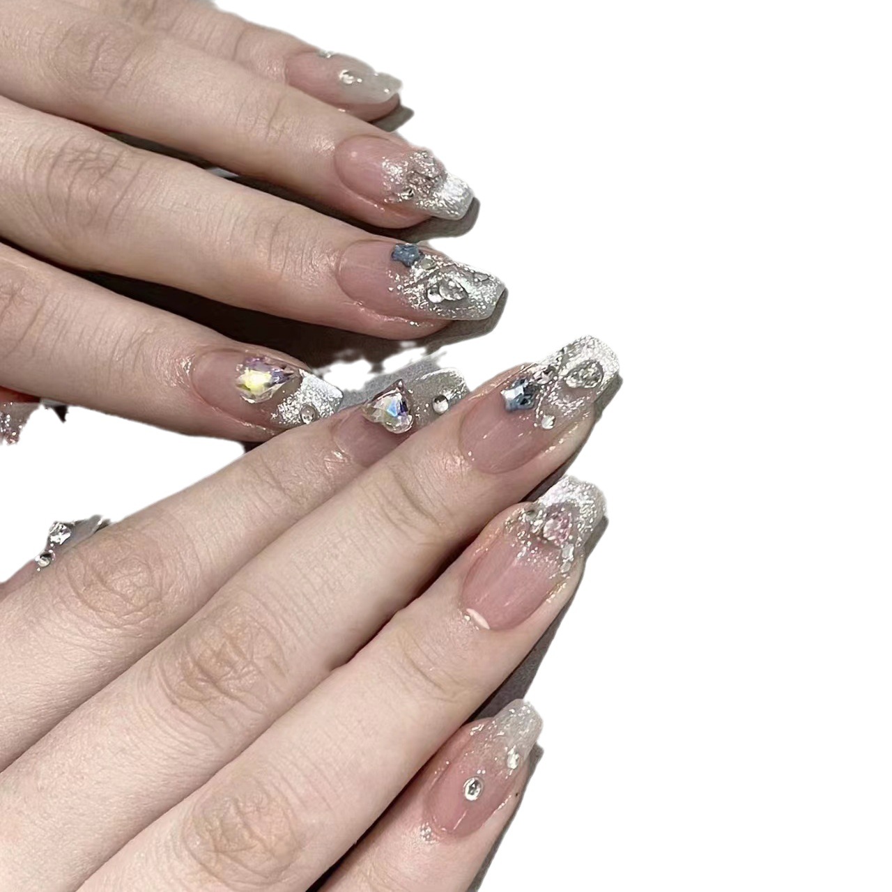 纯手工美甲穿戴甲假指甲贴片新款裸色爆闪追光猫眼法式轻奢碎钻