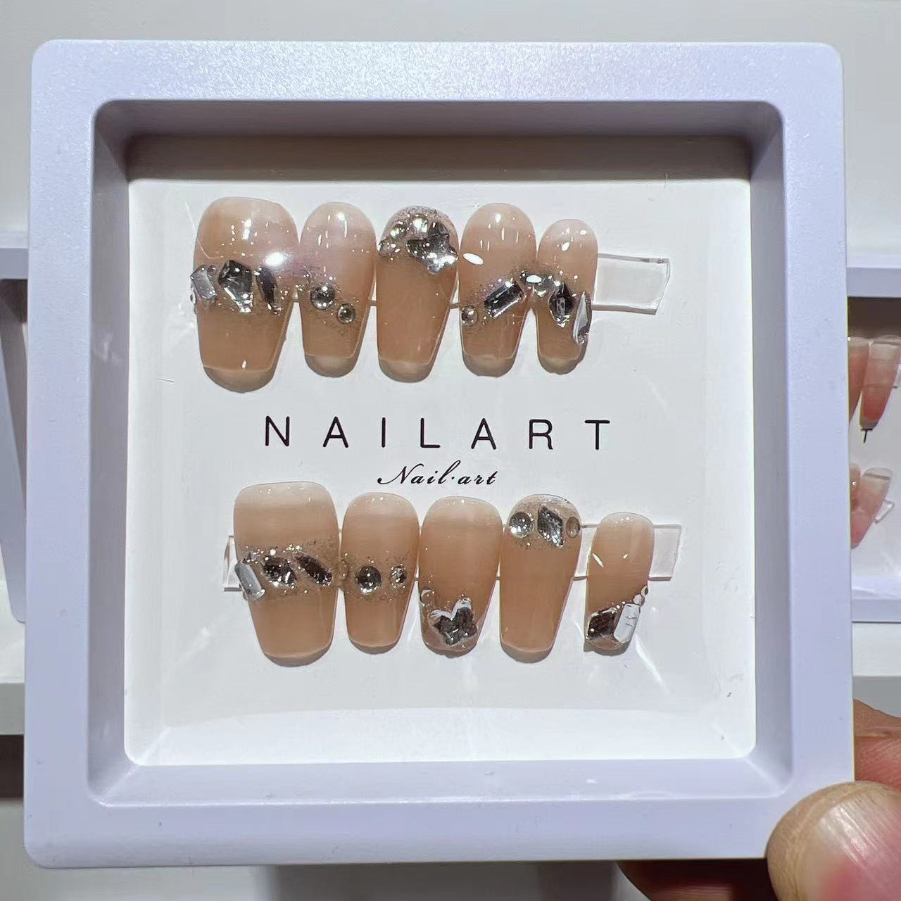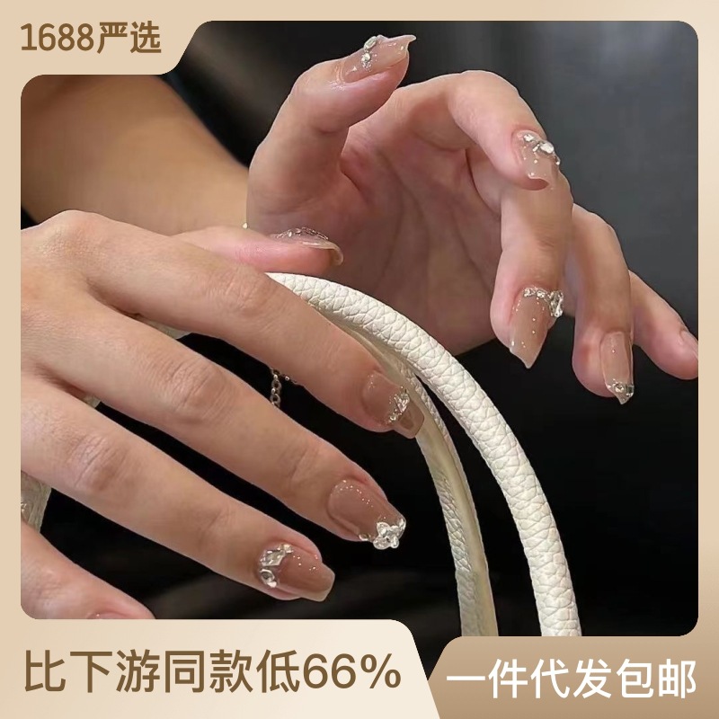 手工美甲穿戴甲假指甲贴片美甲成品秋冬轻奢带钻爆闪显白短款学生