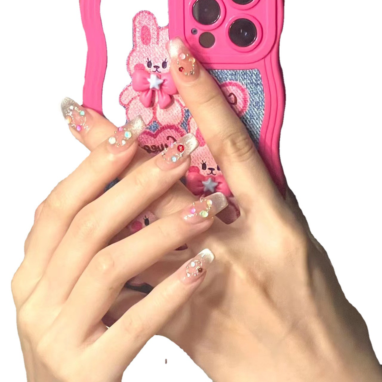 纯手工美甲穿戴甲假指甲贴美甲成品小红书ins新款猫眼可爱泡泡珠
