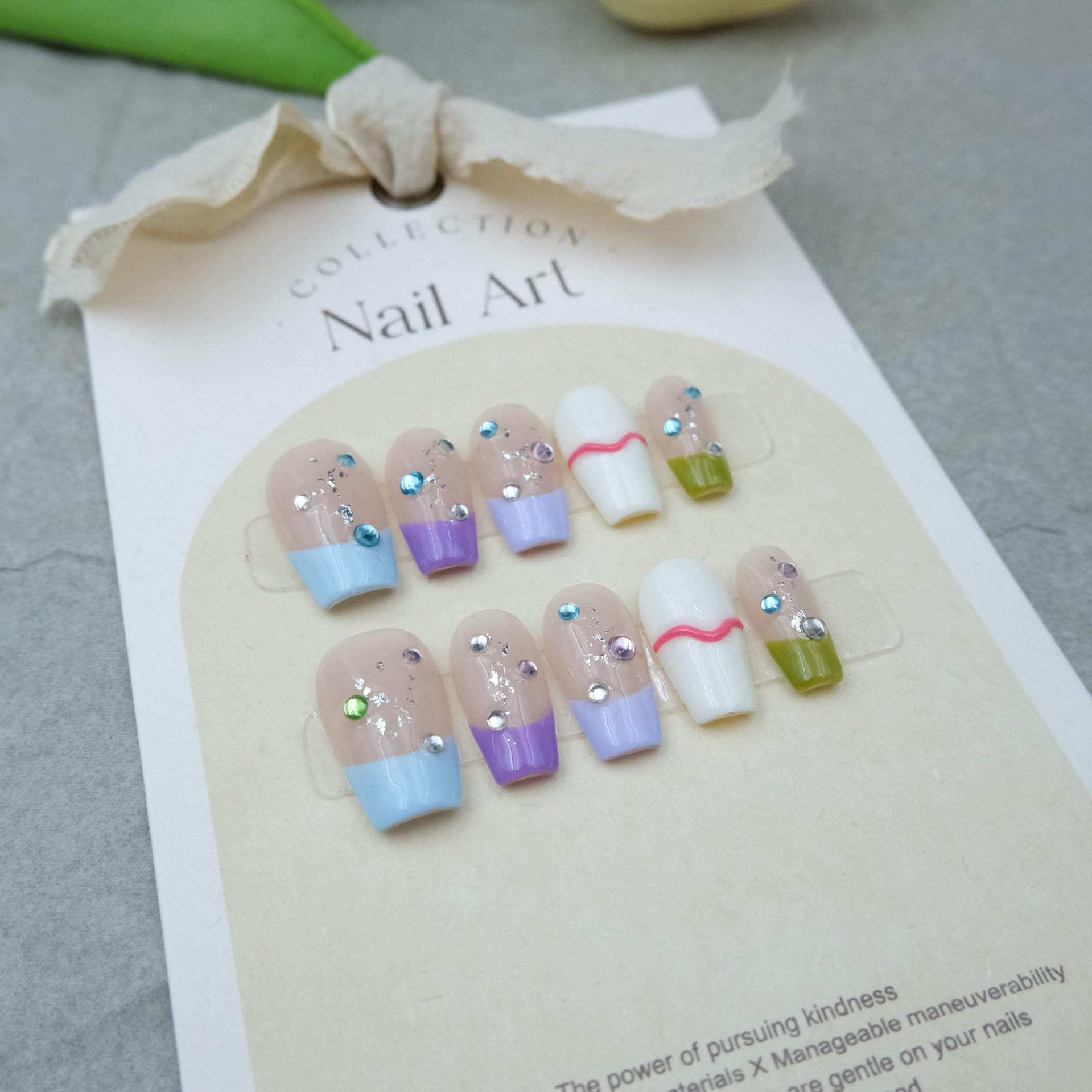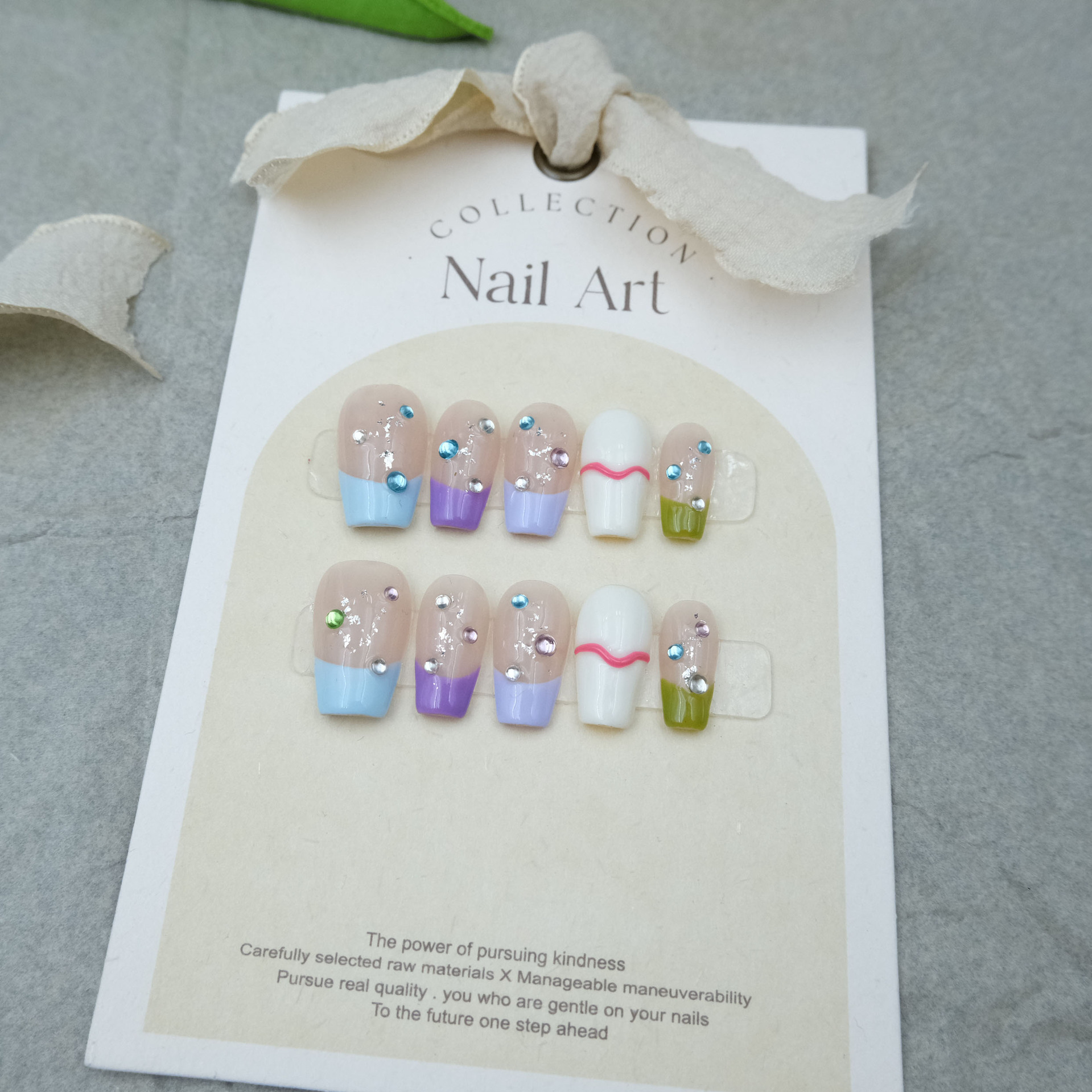 手工美甲穿戴甲指甲贴小仙女辣妹马卡龙闪粉法式小红书同款学生甲