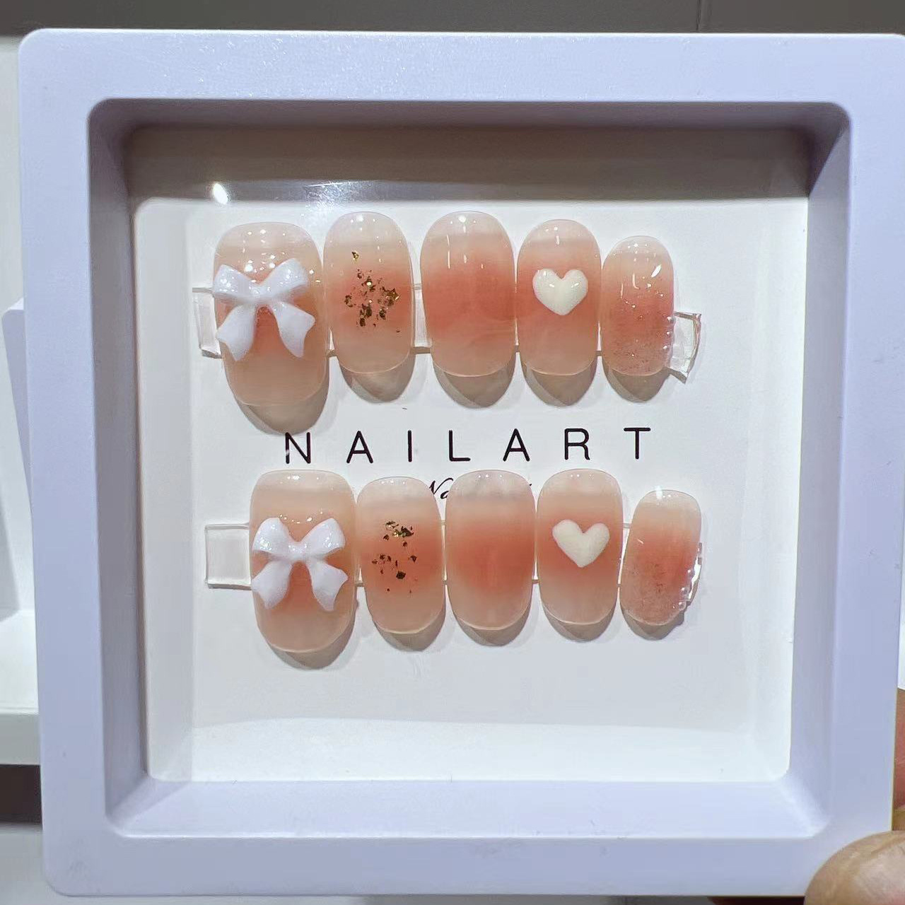 手工美甲穿戴甲假指甲贴片高端极光气质冰透腮红美甲爱心新款学生