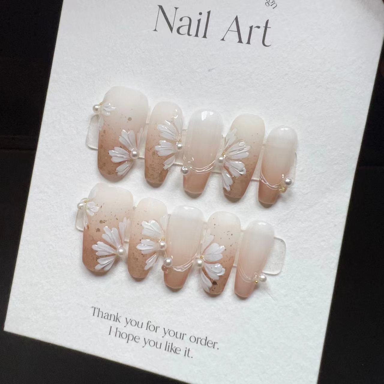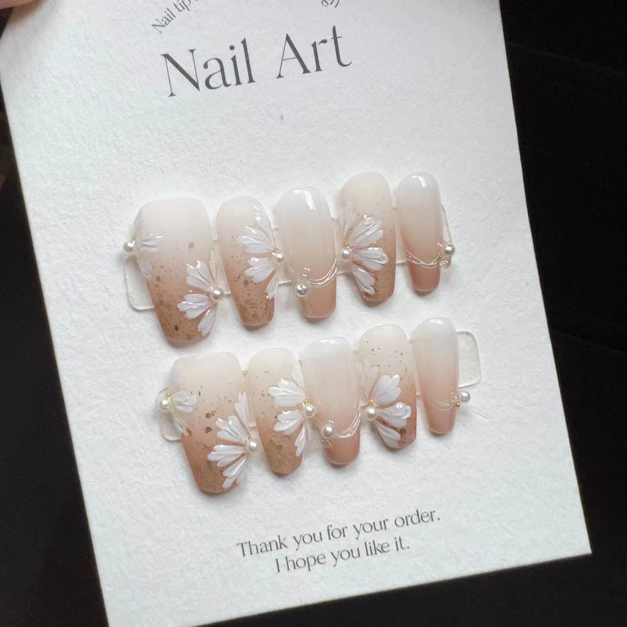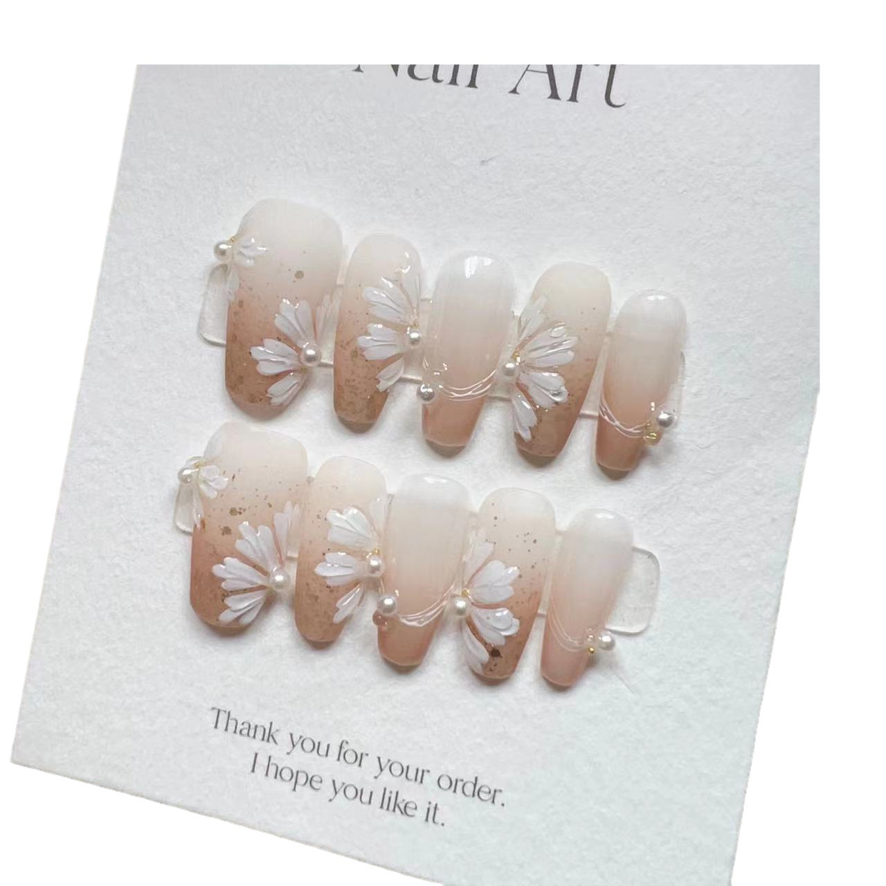 穿戴甲纯手工美甲成品假指甲贴片纯欲清新手绘小花温柔法式纯欲风