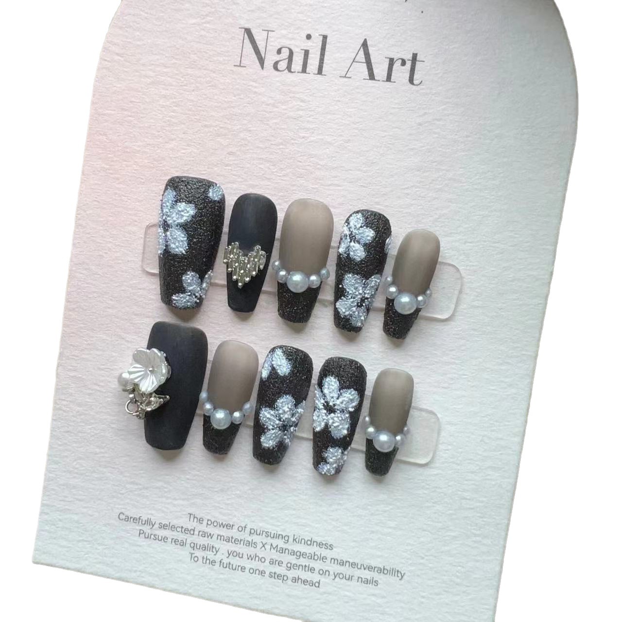 纯手工美甲穿戴甲假指甲贴片石膏白色立体手绘山茶花链条贝壳花朵