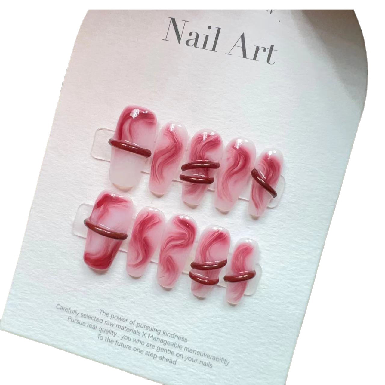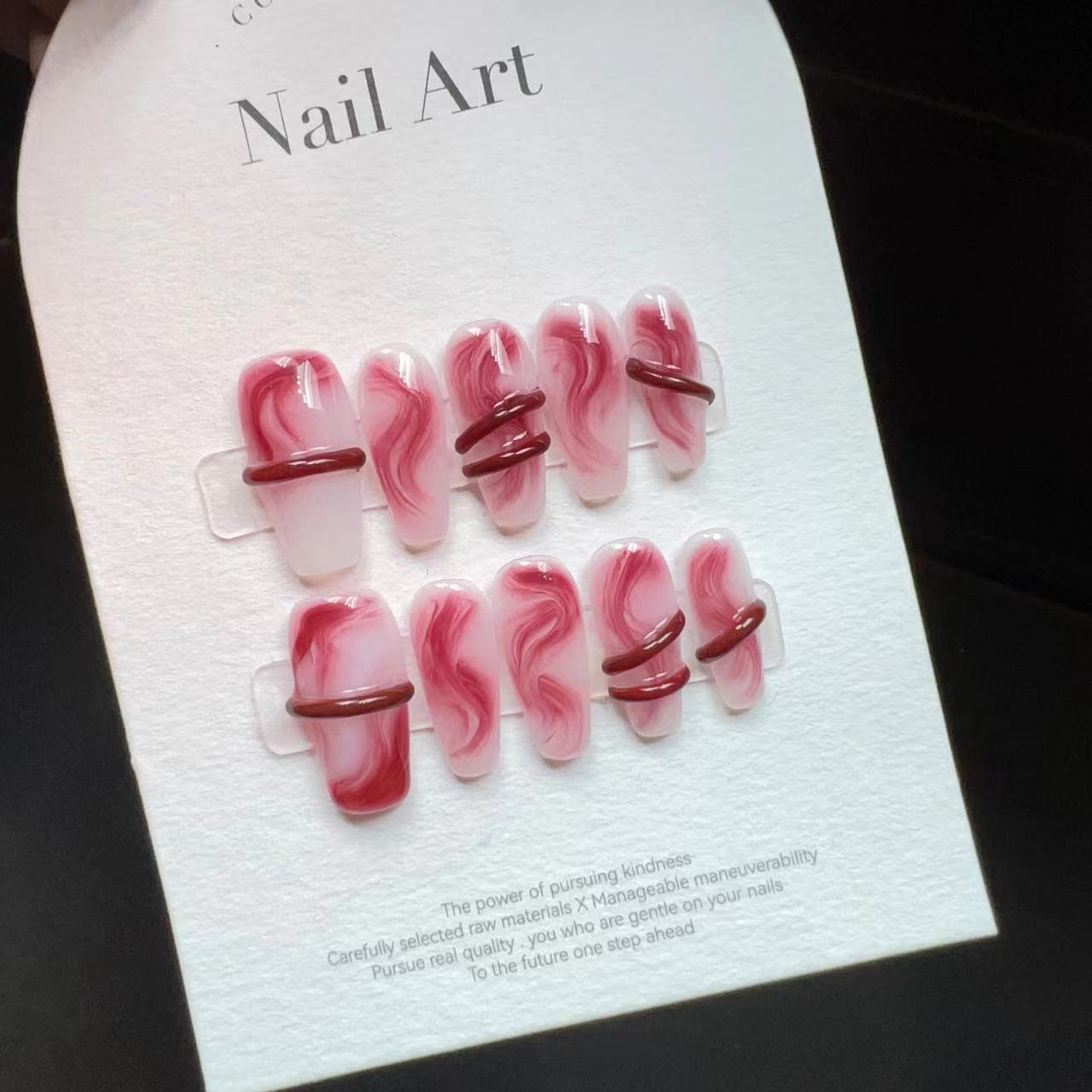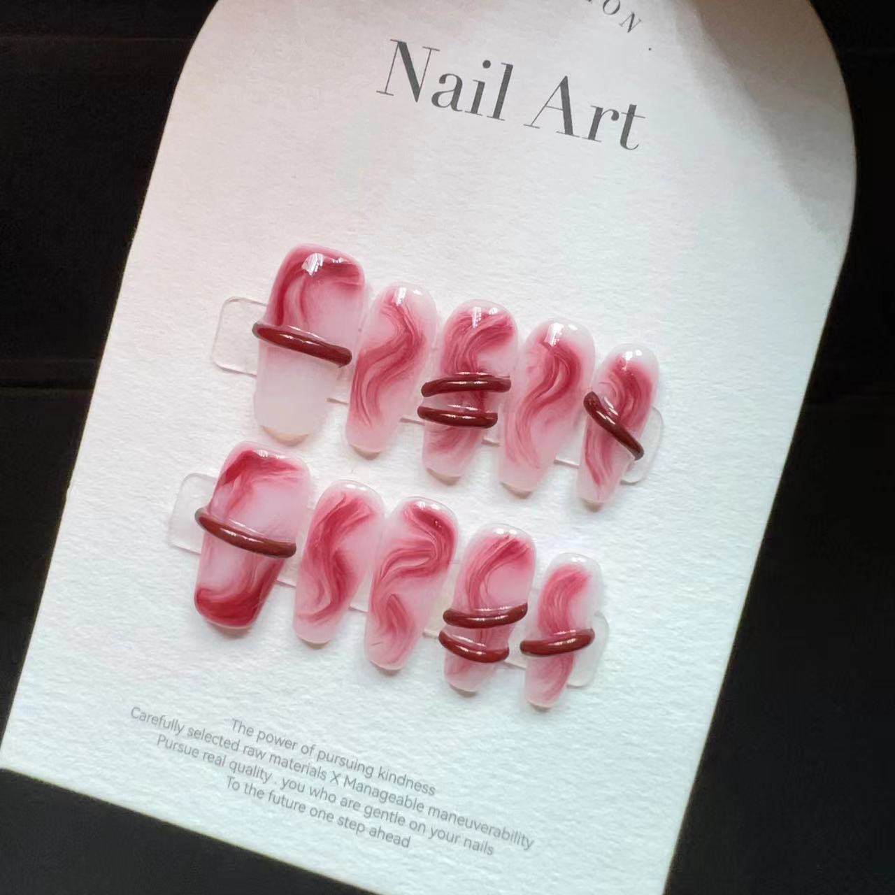 纯手工美甲穿戴甲假指甲贴片千禧辣妹红色晕染丝带纯欲古韵新中式