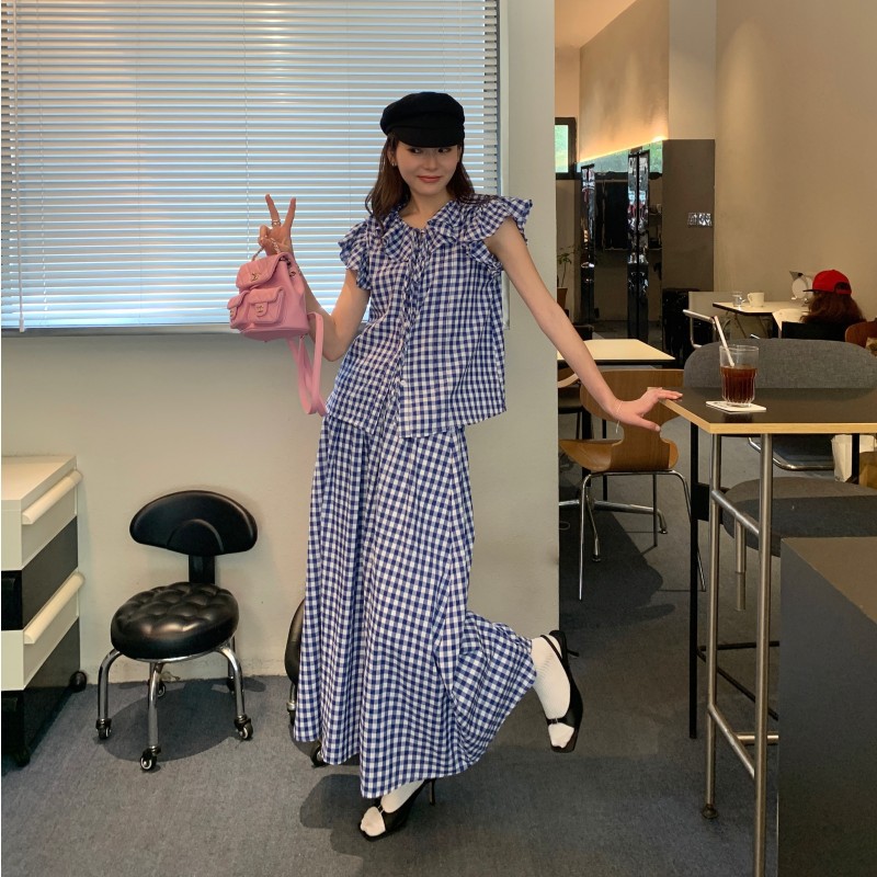 诠释美 NEW OPEN气质通勤高腰格子半身裙女夏长款a字裙82709