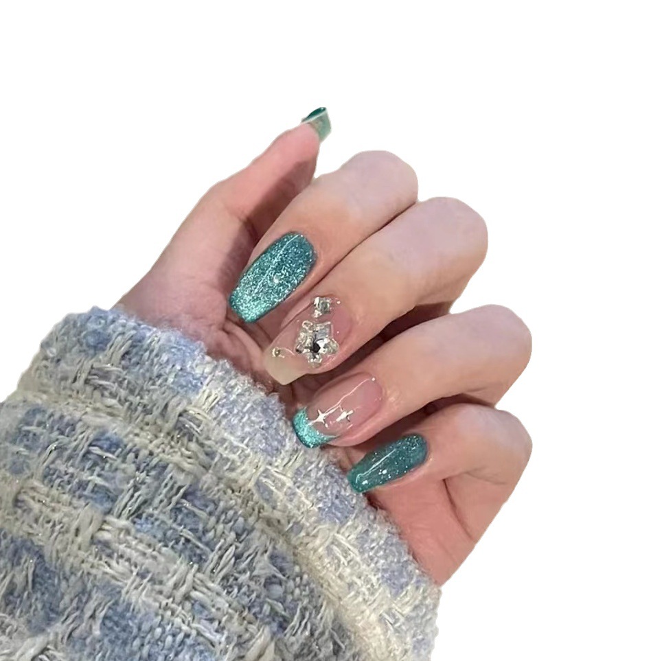 纯手工美甲穿戴甲假指甲贴片高级星光猫眼墨尔本爆闪钻网红款美甲