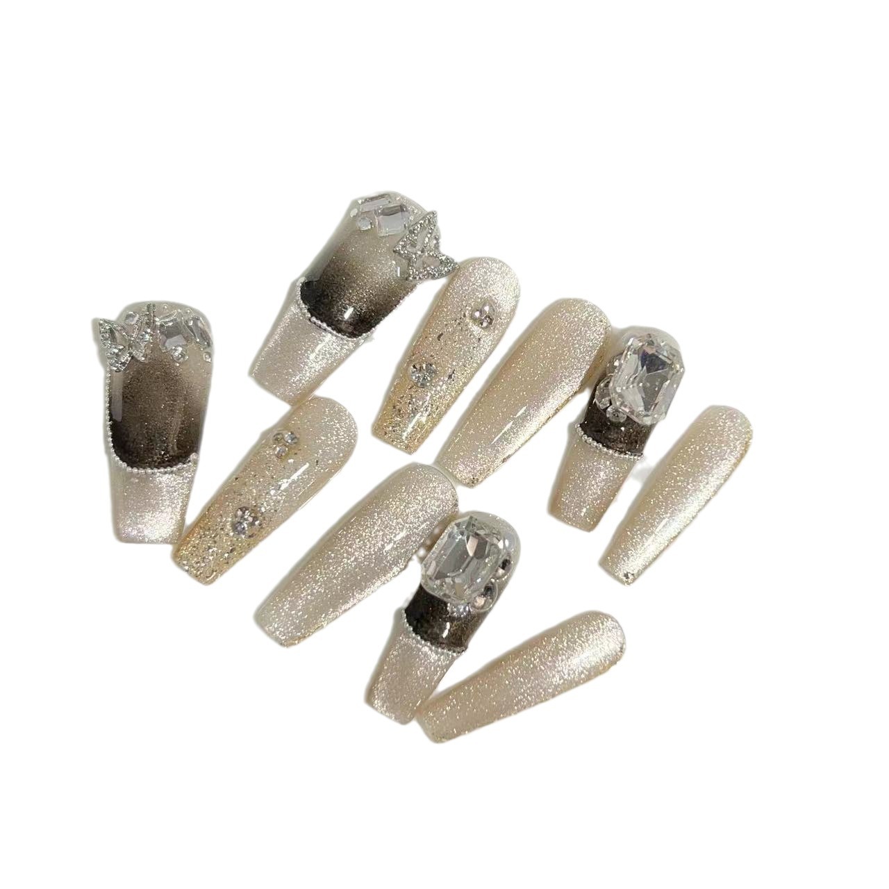 实拍穿戴甲纯手工美甲成品假指甲贴片高级温柔追光猫眼蝴蝶爆闪钻