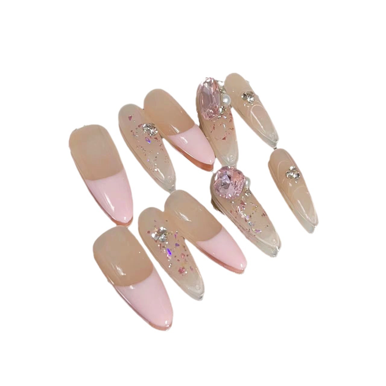 手工美甲穿戴甲假指甲贴片美甲成品秋冬爆闪钻法式爱心可拆卸重复
