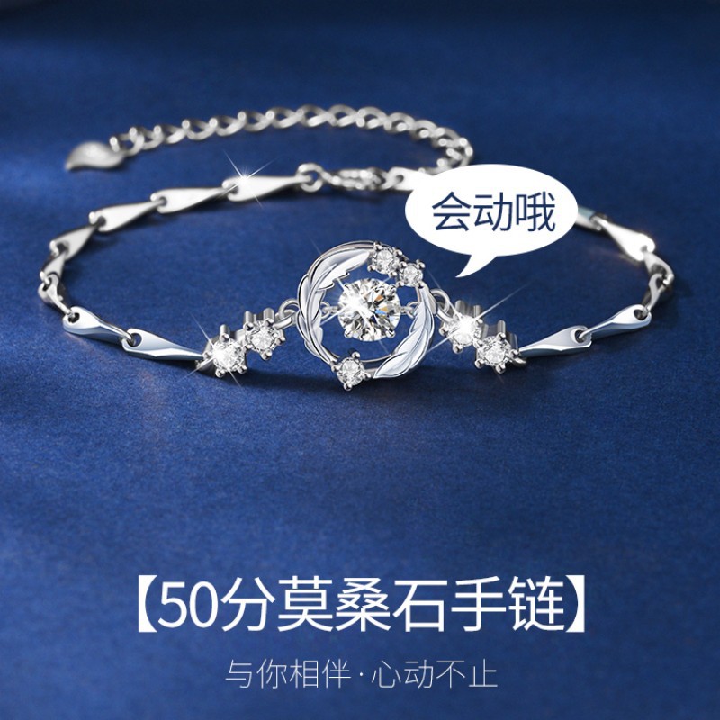 小红书热卖爆款羽你相伴50分莫桑钻饰品灵动的心s925纯银手链女生