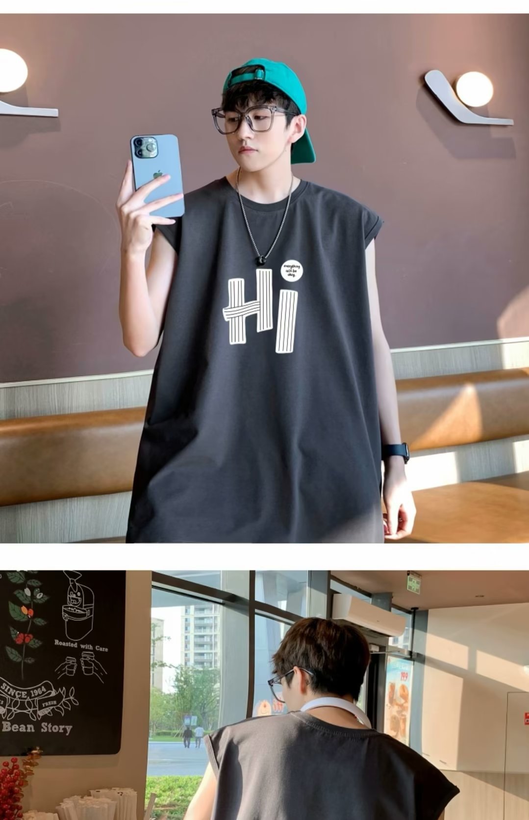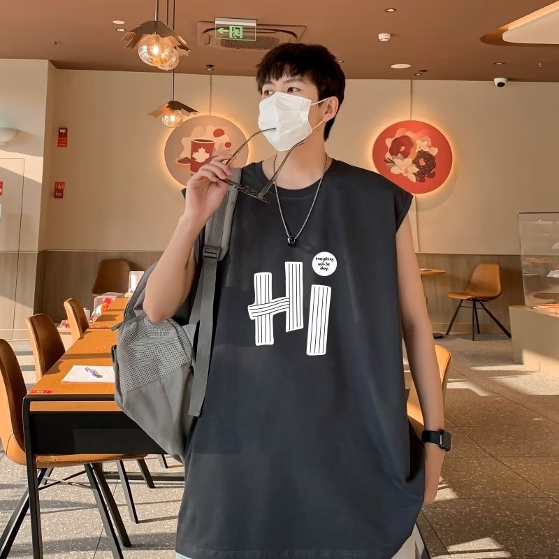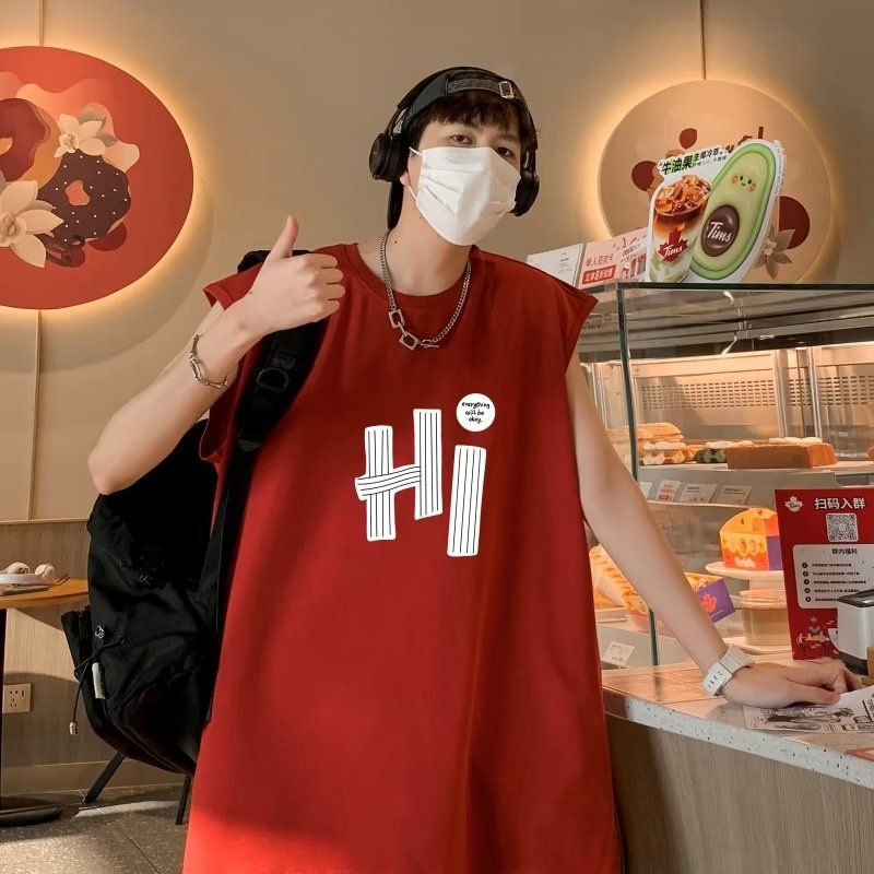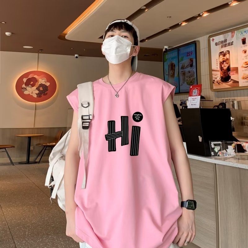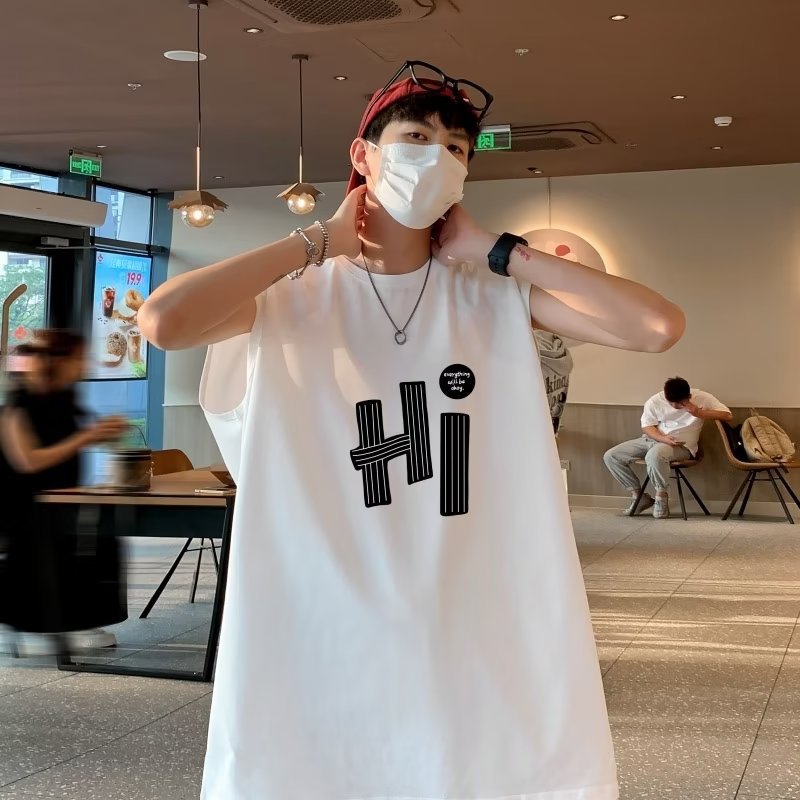 男士无袖t恤夏季薄款印花情侣装运动篮球背心ins潮牌宽松坎肩体恤