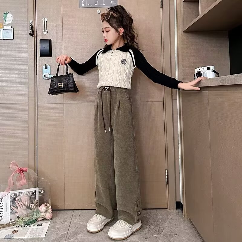 女童春秋裤子新款儿童阔腿裤中大童春秋季灯芯绒休闲直筒长裤