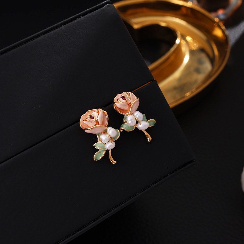森系超仙气质珍珠玫瑰花耳环S925银针高级感简约耳钉时尚百搭耳饰