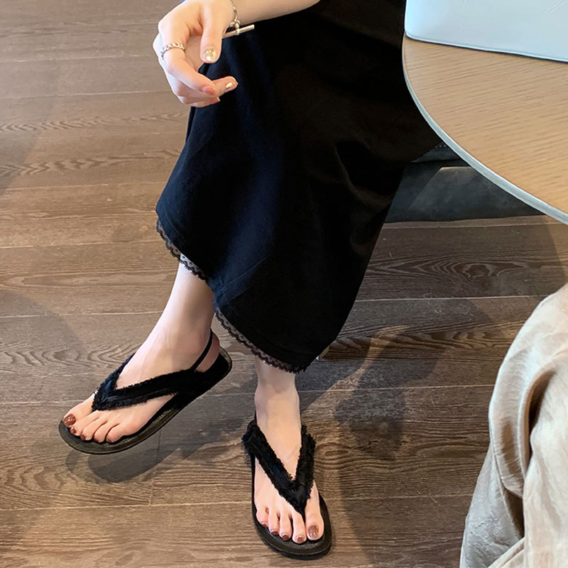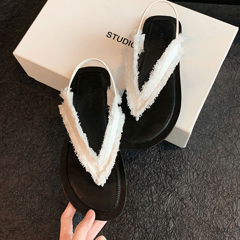 新款韩版真丝毛边平底夹趾软底平底凉拖女外穿夏季