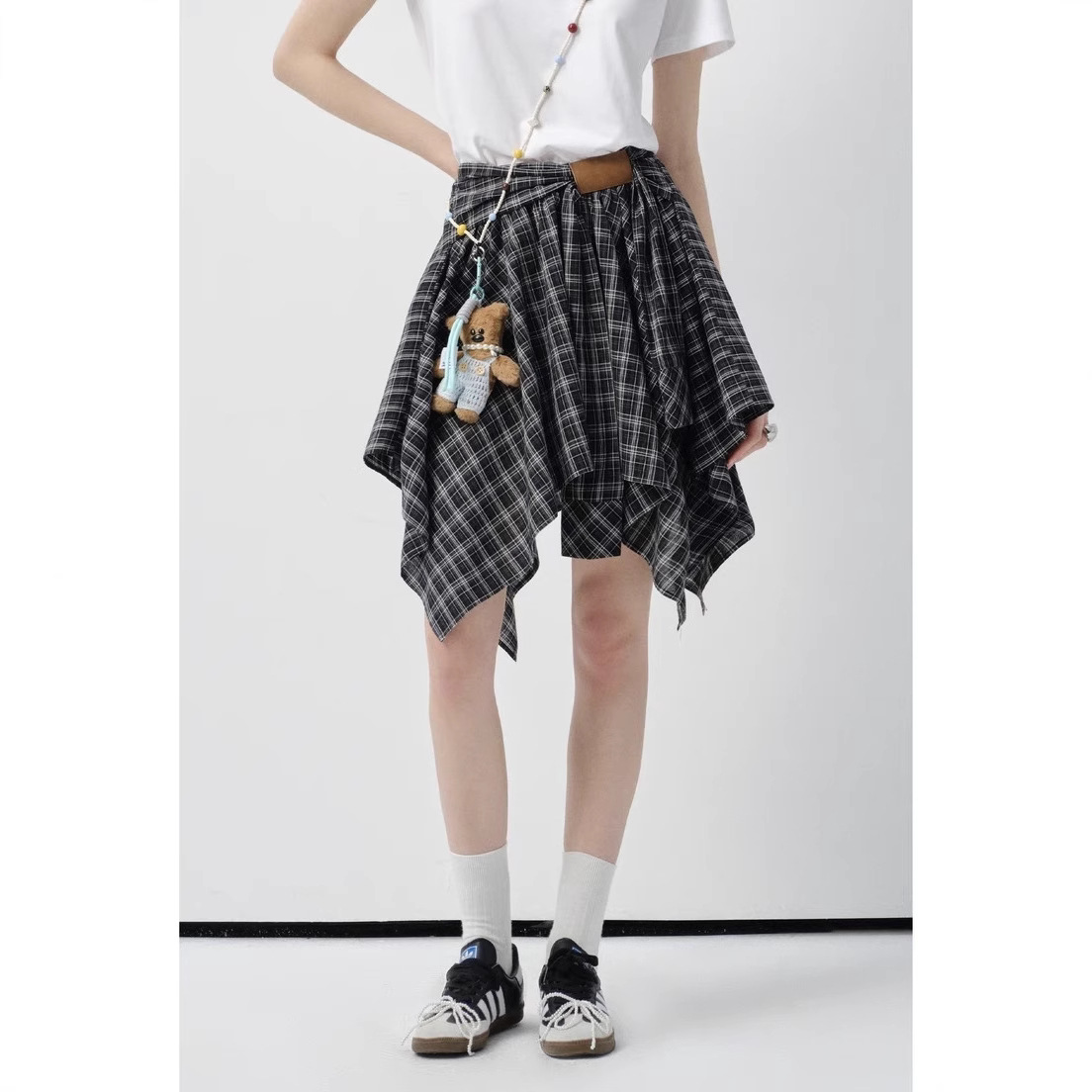 VEGA半身裙女2025春夏新款不规则设计下摆经典黑白格纹短裙