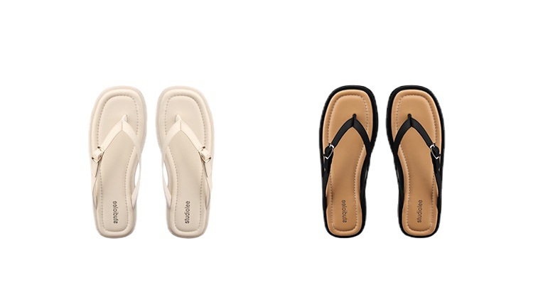 百搭方头显高松糕厚底扣带外穿真皮人字拖鞋女夏季新款