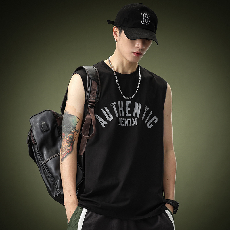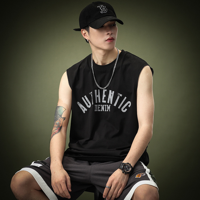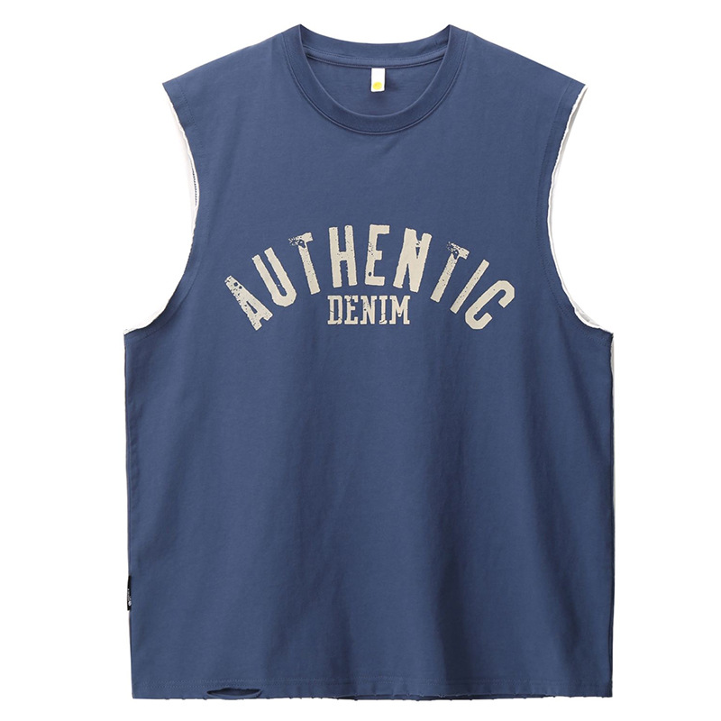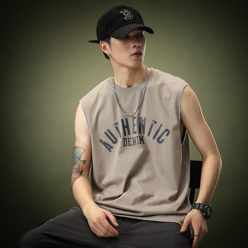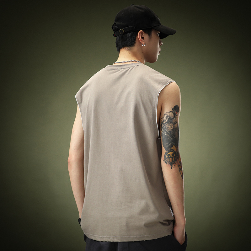 高街刮烂无袖t恤男士夏季ins健身运动训练坎肩假两件叠穿美式背心