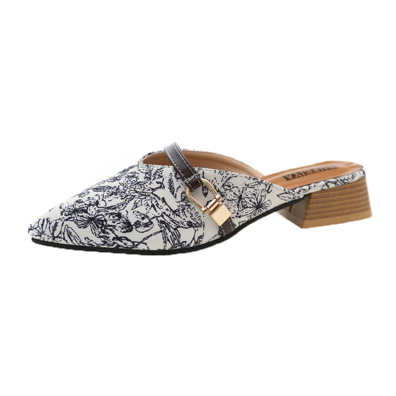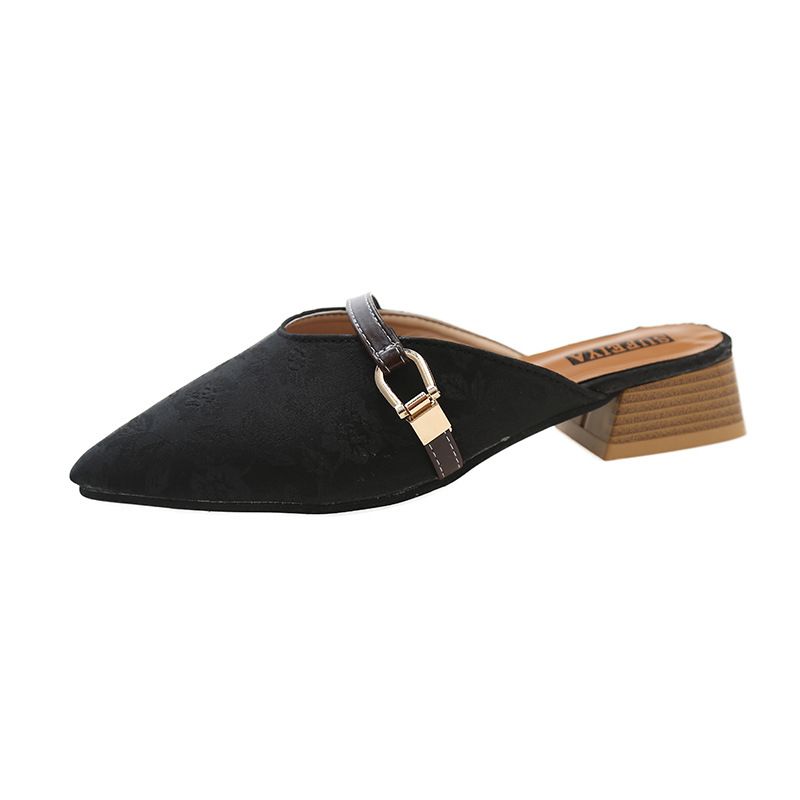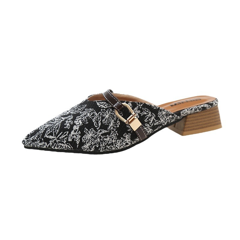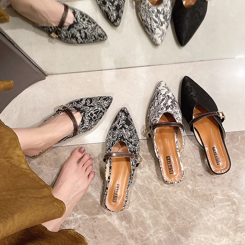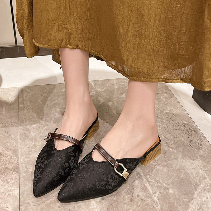 最新爆款滨莉小姐主推高级感国风半拖后空细跟花纹拖鞋