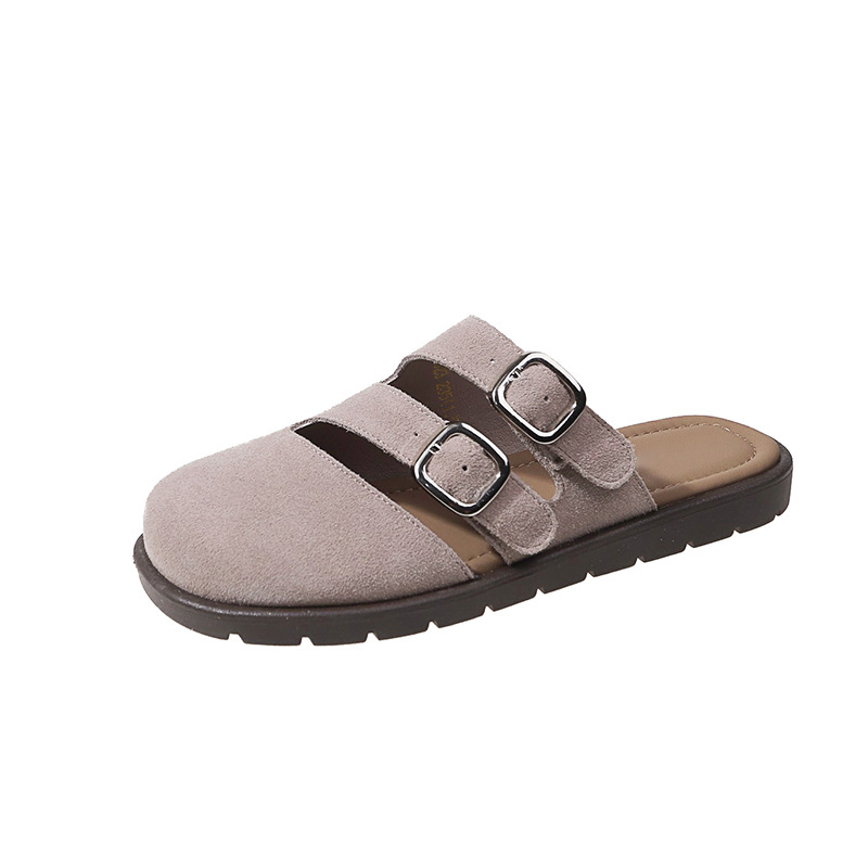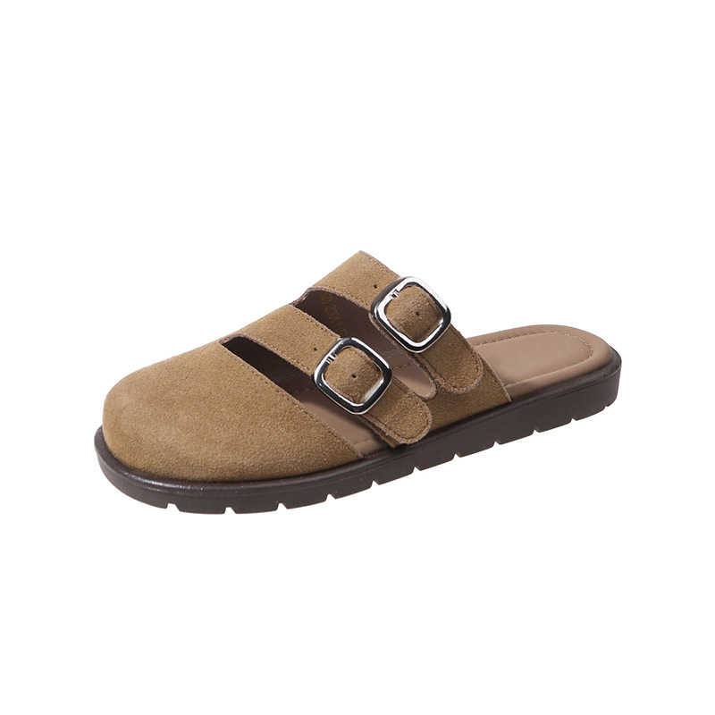 包头复古勃肯半拖女外穿春夏新款平底懒人皮带扣镂空凉拖鞋女