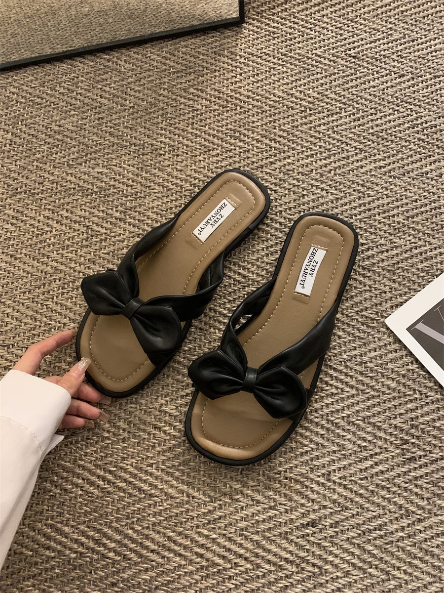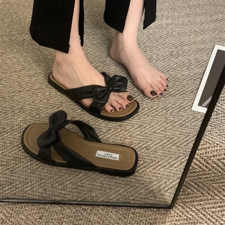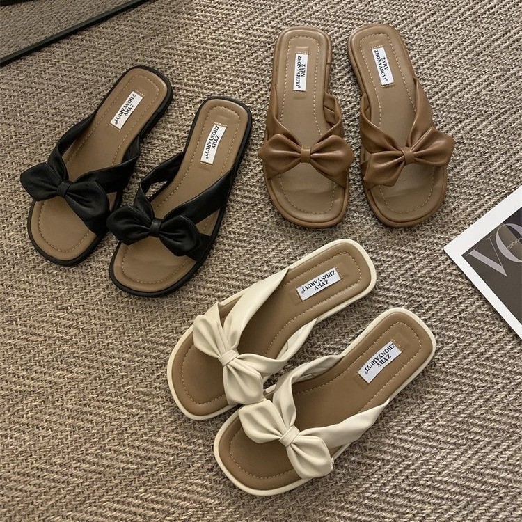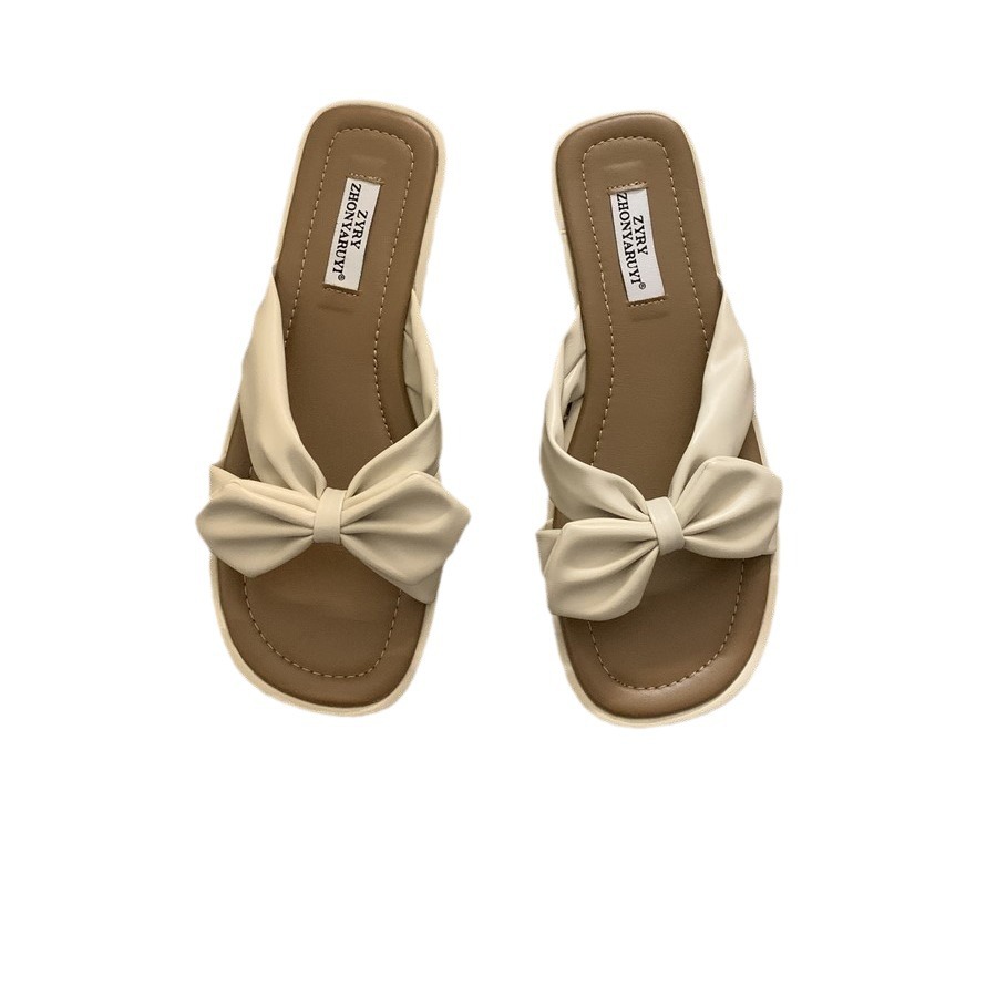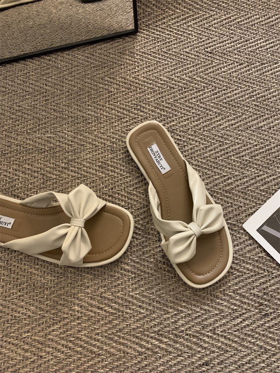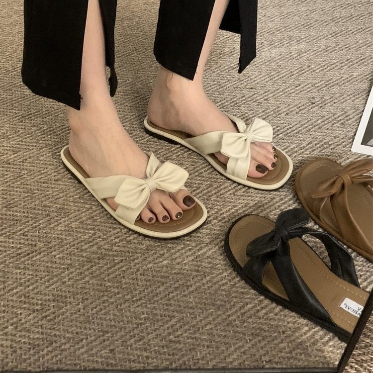 法式凉拖外穿女鞋子年春夏新款平底小众蝴蝶结沙滩一脚蹬拖鞋