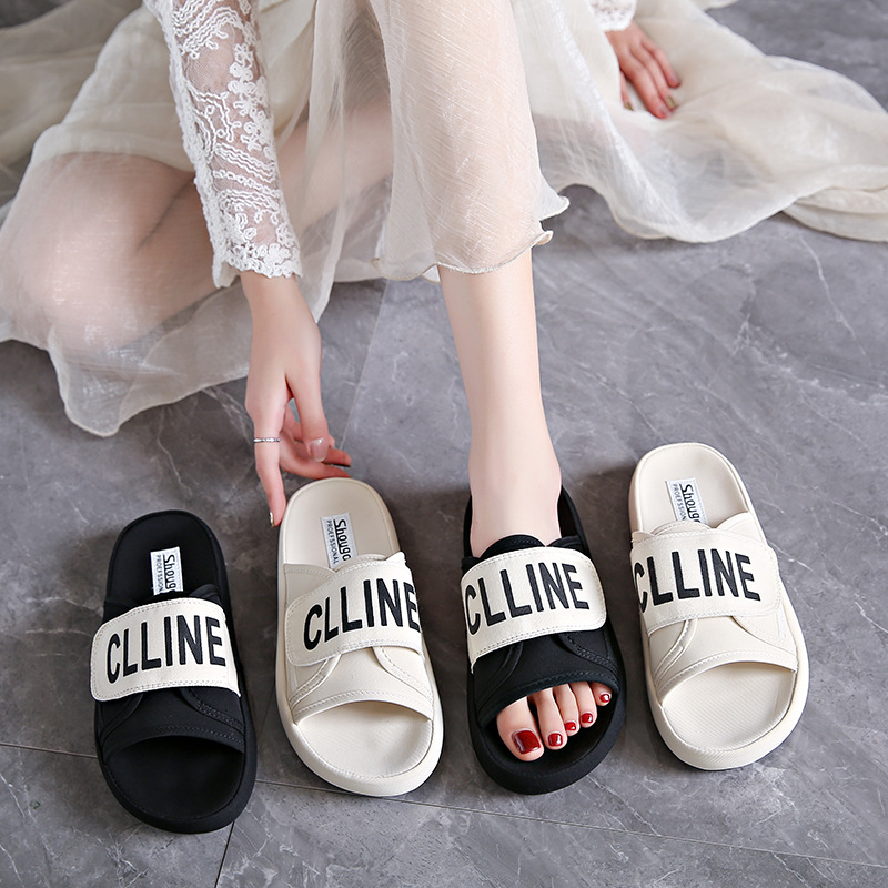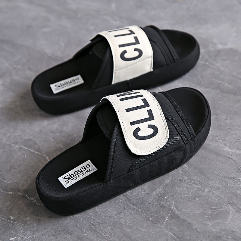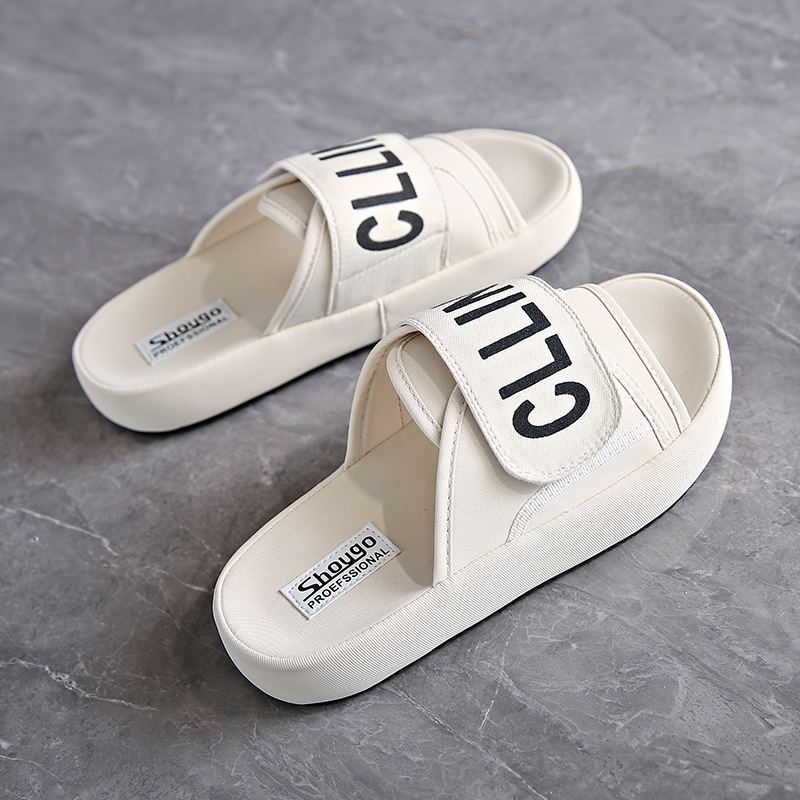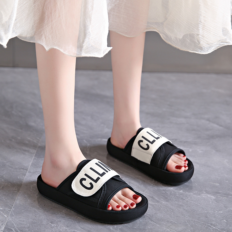 厚底女拖鞋夏季外穿新款魔术贴踩屎感一字拖露趾沙滩凉拖鞋