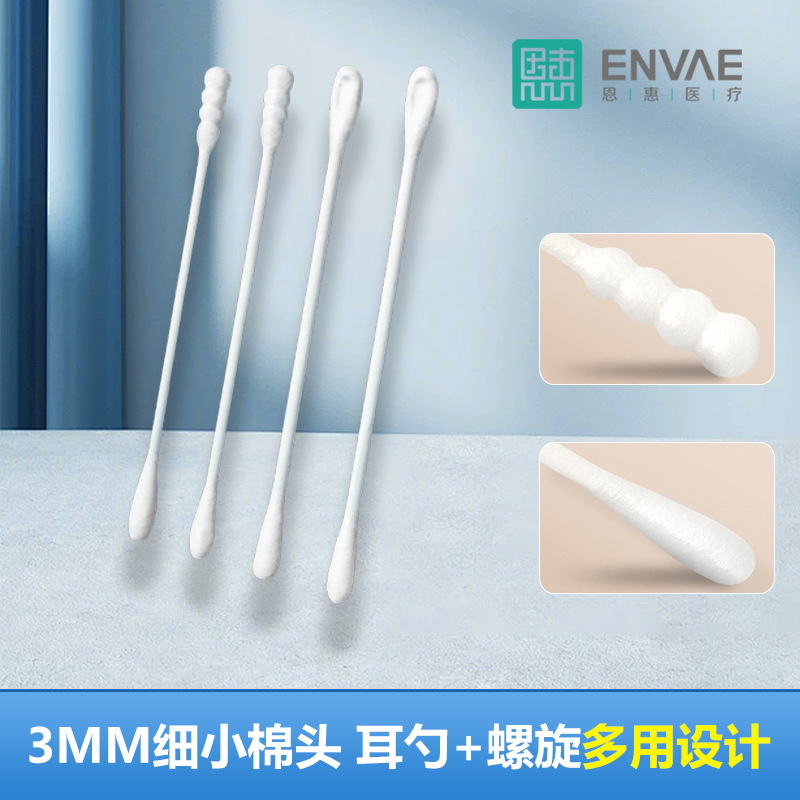 婴儿棉签200支装双头纸轴新生儿宝宝耳勺螺旋掏耳清洁一次性细轴