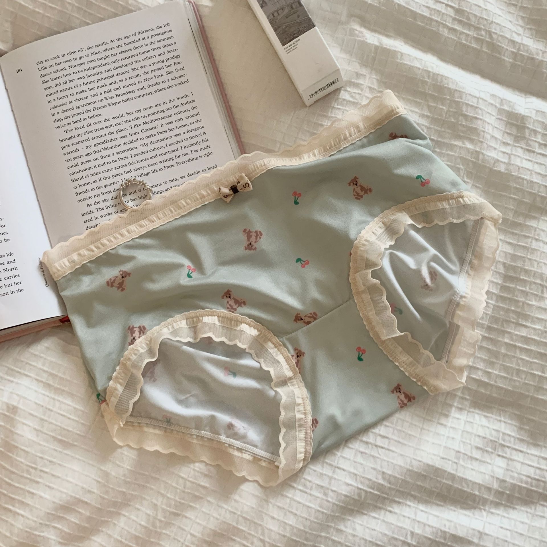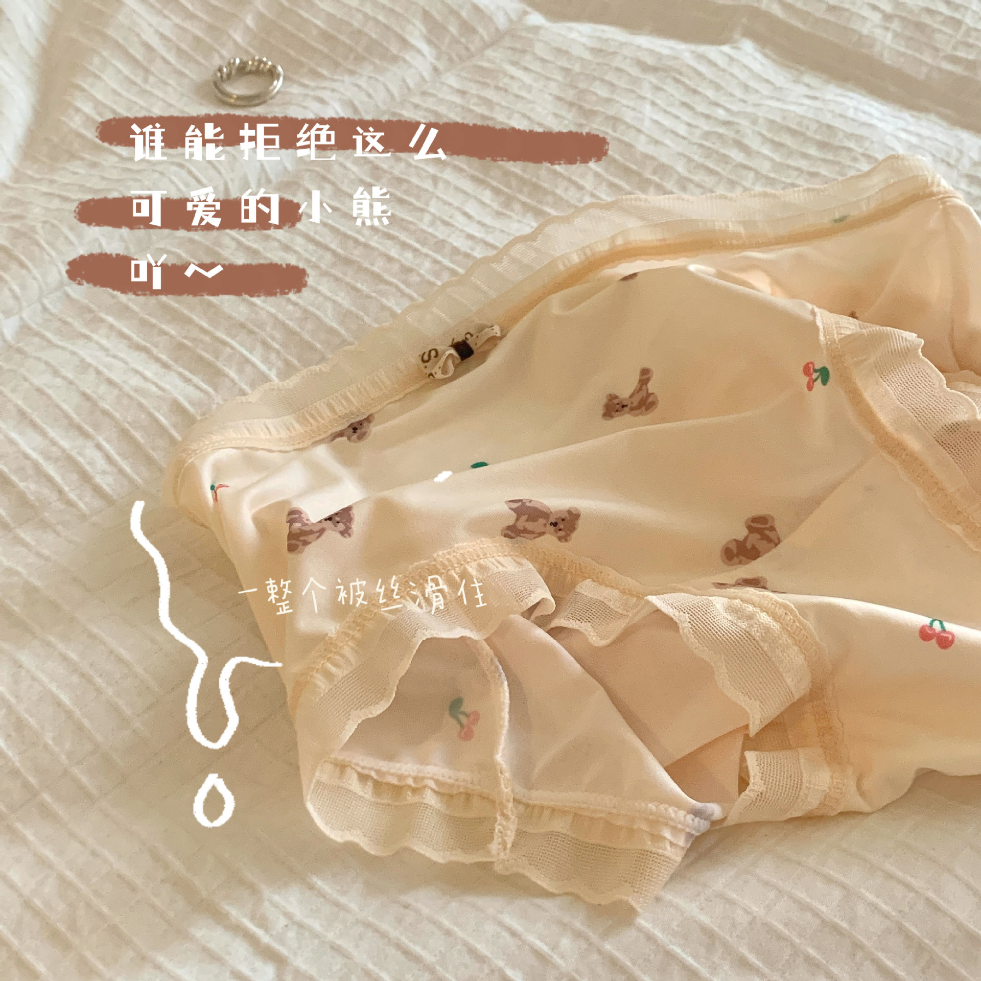 困困熊该醒啦日系少女简约冰丝舒适无痕棉裆中腰蕾丝边女士三角裤