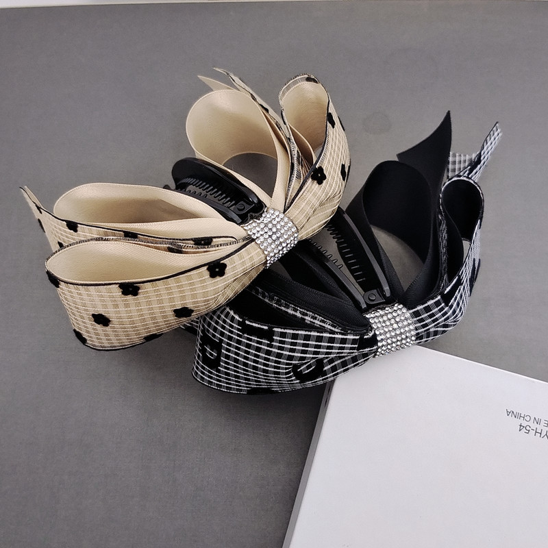 网红时尚香蕉夹设计水钻蝴蝶结印花发夹超仙气质后脑勺盘发发饰
