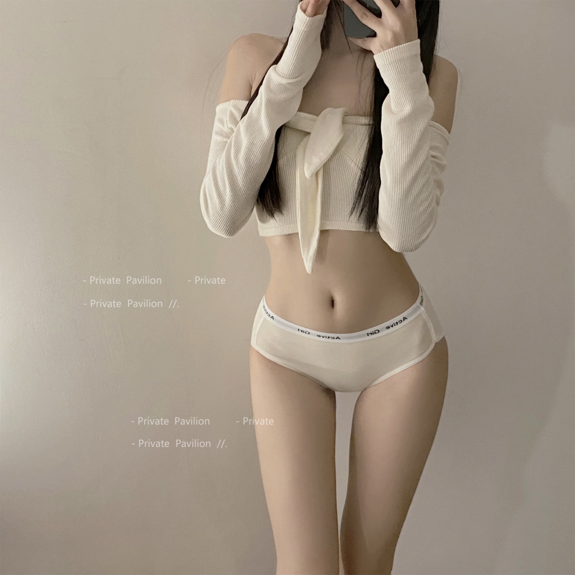法式少女纯欲撩人半透明字母蝴蝶结简约性感可爱纯棉裆女士三角裤